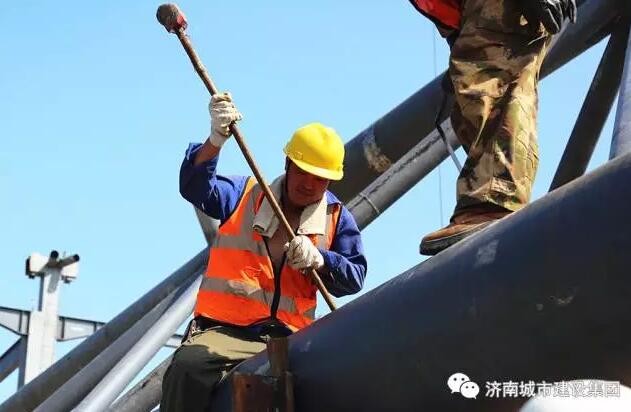 9月8日上午,济南西部会展中心项目的第一榀(pǐn,屋架量词)屋面钢结构桁架吊装完成,五号展馆的钢结构主体雏形初现,济南西部会展中心的建设步伐又推进了扎实一步。
