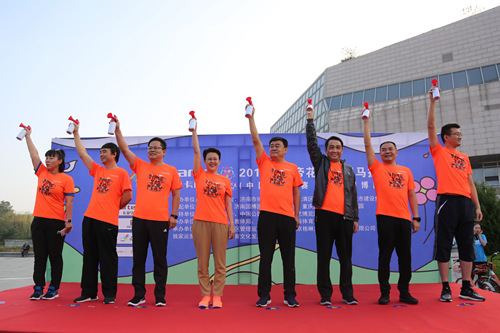 随后进行的RunningTogether7公里公益跑,是以帮助孤独症儿童走出家门参加社会活动为宗旨的公益体育品牌,RunningTogether现场举行了义卖活动。截至目前,RunningTogether已在北京、敦煌、大连等城市做过多次活动,累计参与家庭已达2700多个、单位团体100多家,近20000人参赛,累计关注自闭症儿童1300人次。