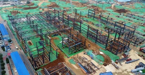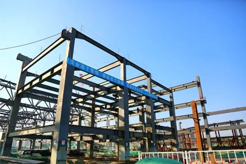 位于项目最南侧,最先开工的五号展馆主体钢结构已基本完成。