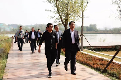 在集团领导和相关人员陪同下,王中军一行来到华山生态湿地公园,进行了实地参观考察,华山片区项目相关负责人向王中军一行介绍了华山片区的开发建设情况。李国祥董事长向王中军一行介绍道,华山历史文化底蕴深厚,这里曾发生过著名的齐晋鞍之战,赵孟頫的《鹊华秋色图》取景于此,李白、元好问、康有为等文人墨客对此情有独钟。王中军表示,华山是个有山有水有历史文化的地方,非常的宜居,也很适合做文化艺术类项目,他有兴趣在未来促进此类项目的落地。