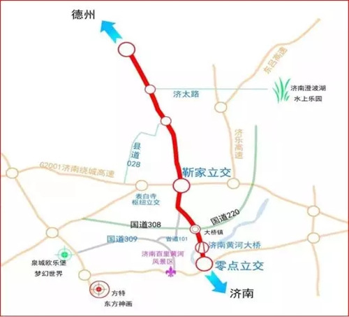 沿线居民和企业通过靳家互通立交往东直达遥墙国际机场、连接济乐和济东高速,往西连接青银直通京福、济聊高速,极大地方便了黄河北地区市民出行。