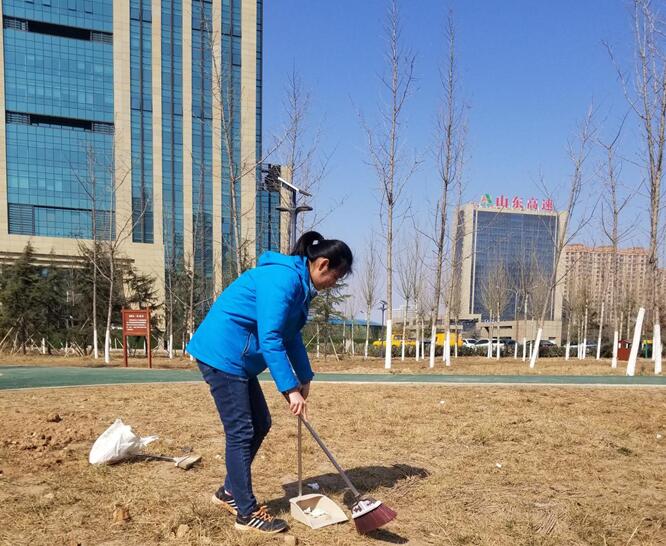 3月2日上午,资产运营公司团委组织青年团员志愿者到济南市政综合指挥调度中心大楼南侧的社区公园进行义务大扫除活动。
