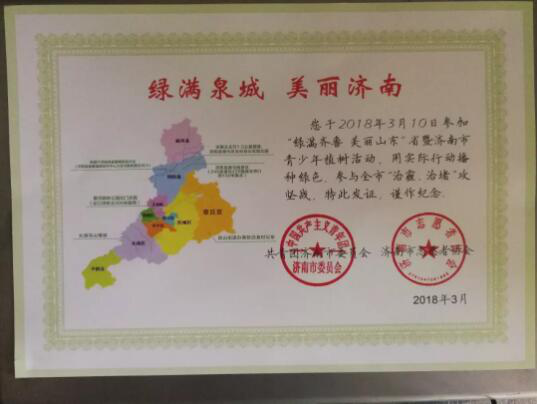 3月10日上午,团省委、团市委联合爱济南为助力济南新旧动能转换先行区绿色生态建设,开展2018年“绿满齐鲁,美丽山东”暨济南市青少年植树活动。本次活动植树场地位于济阳县崔寨镇邢家渡干渠前街段,方圆约2公里。资产运营公司积极动员,组织公司青年团员参与本次活动。