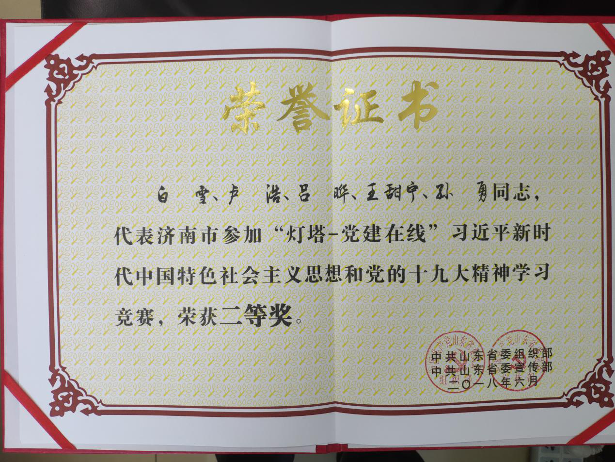 6月26日下午,全省“灯塔-党建在线”党的十九大精神学习竞赛现场总决赛在济南山东电视台落下帷幕。来自437ccm·必赢国际市政资产运营公司的吕晔、孙勇,市公安局的王甜宁,市公交总公司的白雪,大智教育集团的卢浩等五名同志代表济南市参加比赛,荣获二等奖。