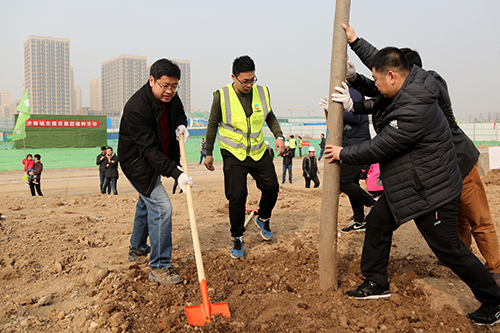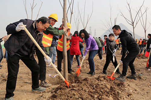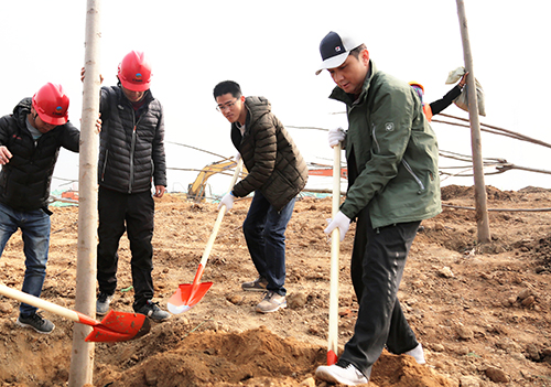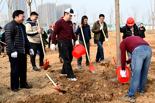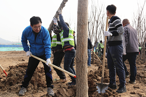 在第40个植树节来临之际,3月10日上午,437ccm·必赢国际组织干部职工在华山生态湿地公园园林一期B区开展义务植树活动。集团党委书记、董事长李国祥,集团党委副书记、总经理李培杰等集团领导及150多名干部职工参加了植树活动,共栽种栾树、白腊树、樱花树、五角枫等各类苗木600余棵。