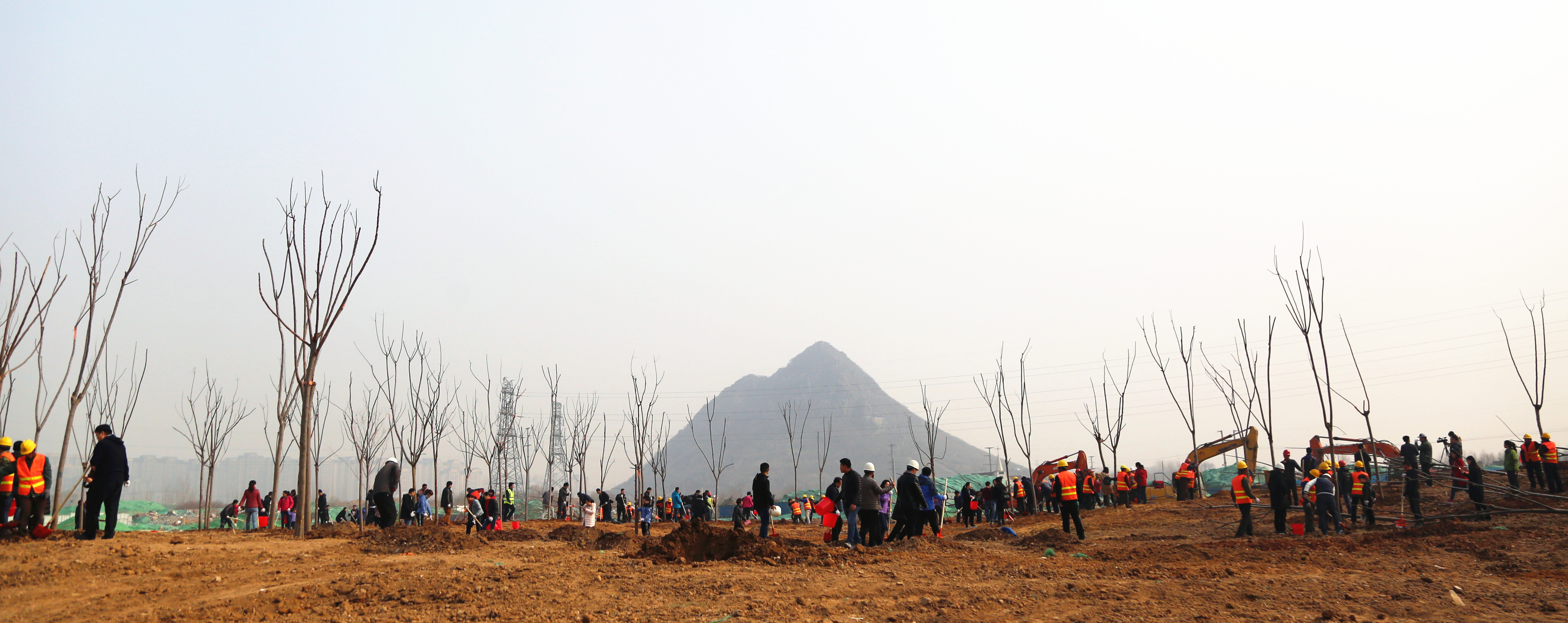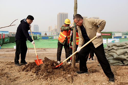 在活动现场,参加植树的干部职工个个热情高涨、干劲十足,他们几个人一组,扶直树苗、挥锹培土、踩实压紧,大家配合得很默契,整个劳动场面繁忙而有序。经过一上午的紧张劳动,一排排整齐的苗木为初春增添了生机。