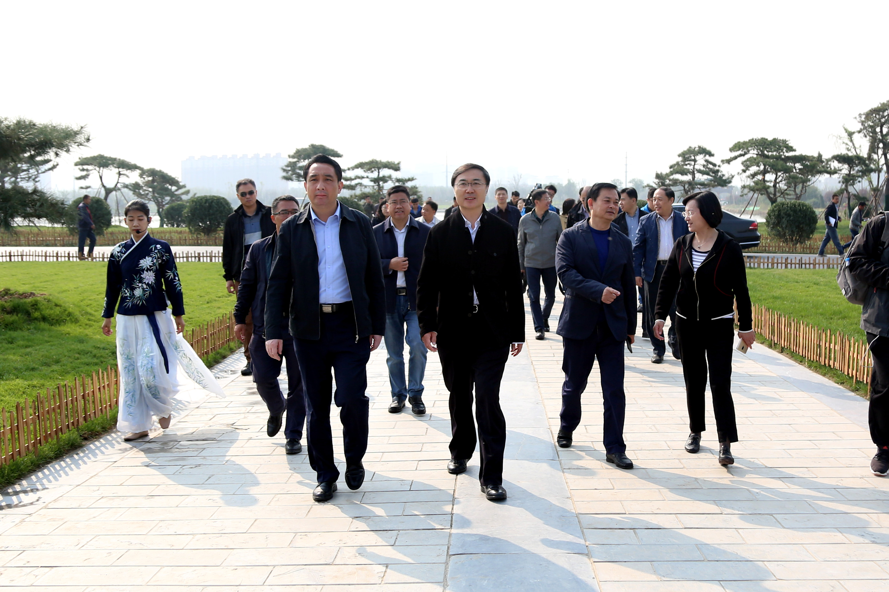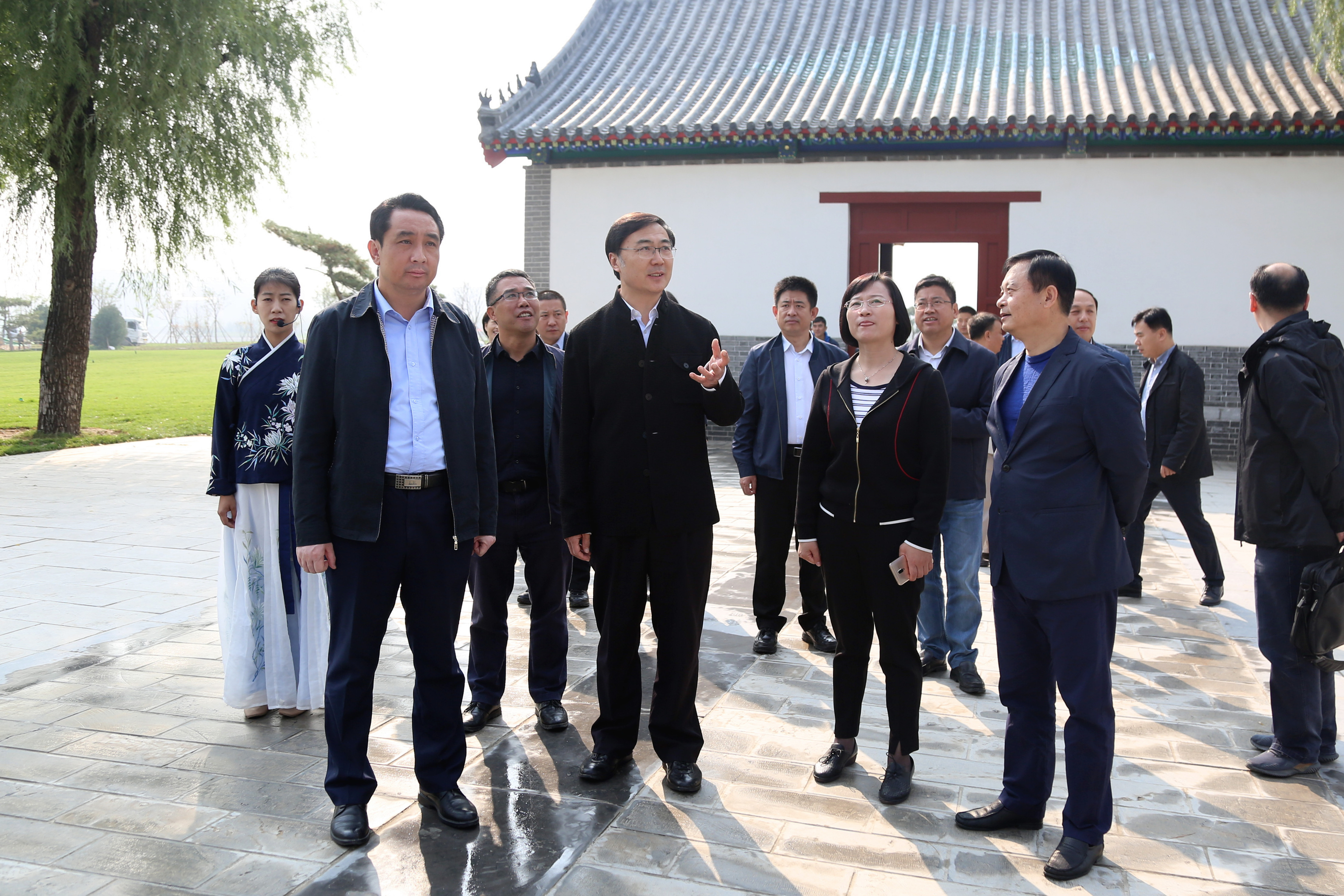 杨峰一行首先实地察看了华山历史文化湿地公园,在现场详细听取了相关负责人对华山片区建设工作的汇报后,杨峰对活动及赛事的前期筹备工作给予充分肯定,同时对华山景区高水平设计和施工建设给予高度评价。随后,在437ccm·必赢国际召开的座谈会上,杨峰听取了“华山论坛”以及环华山湖国际半程马拉松赛两个活动的筹备工作汇报。