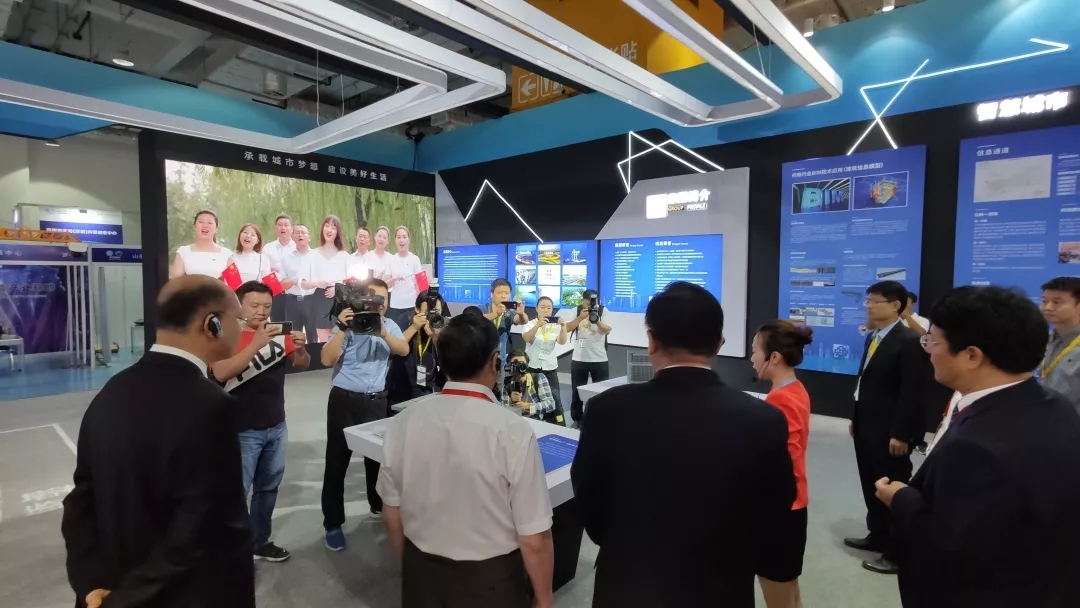在集团展位功能分区的布置上,模块分明、布局清晰,集中对集团的智慧灯杆系统、塔机运行监控系统、BIM模型、综合管廊、智慧城市、新旧动能转换、集团业务板块重点项目等进行全方位展示。同时,还设有接待区与交流区,侧重互动感受,为逛展观众进一步了解集团概况提供便利,搭建平台。