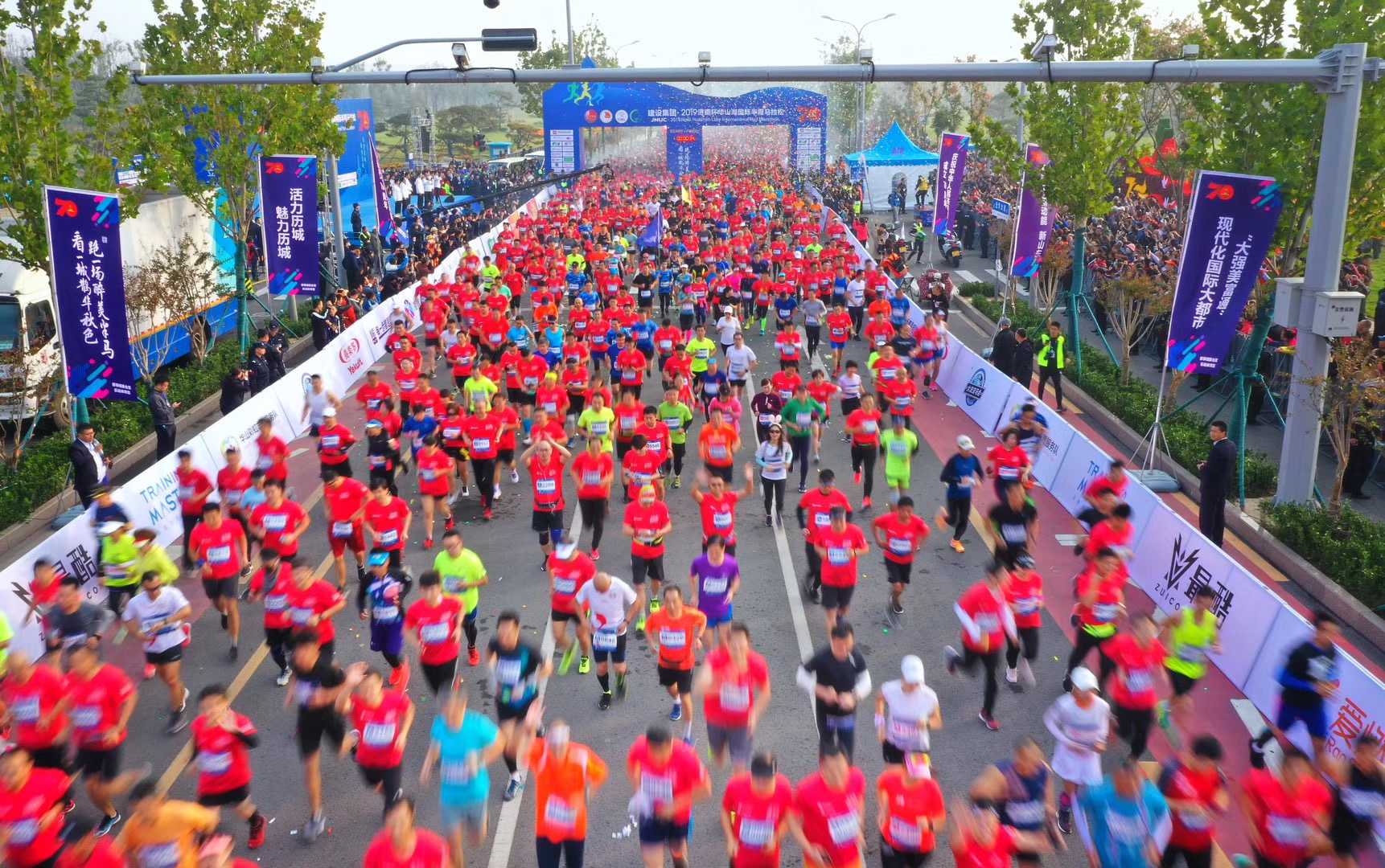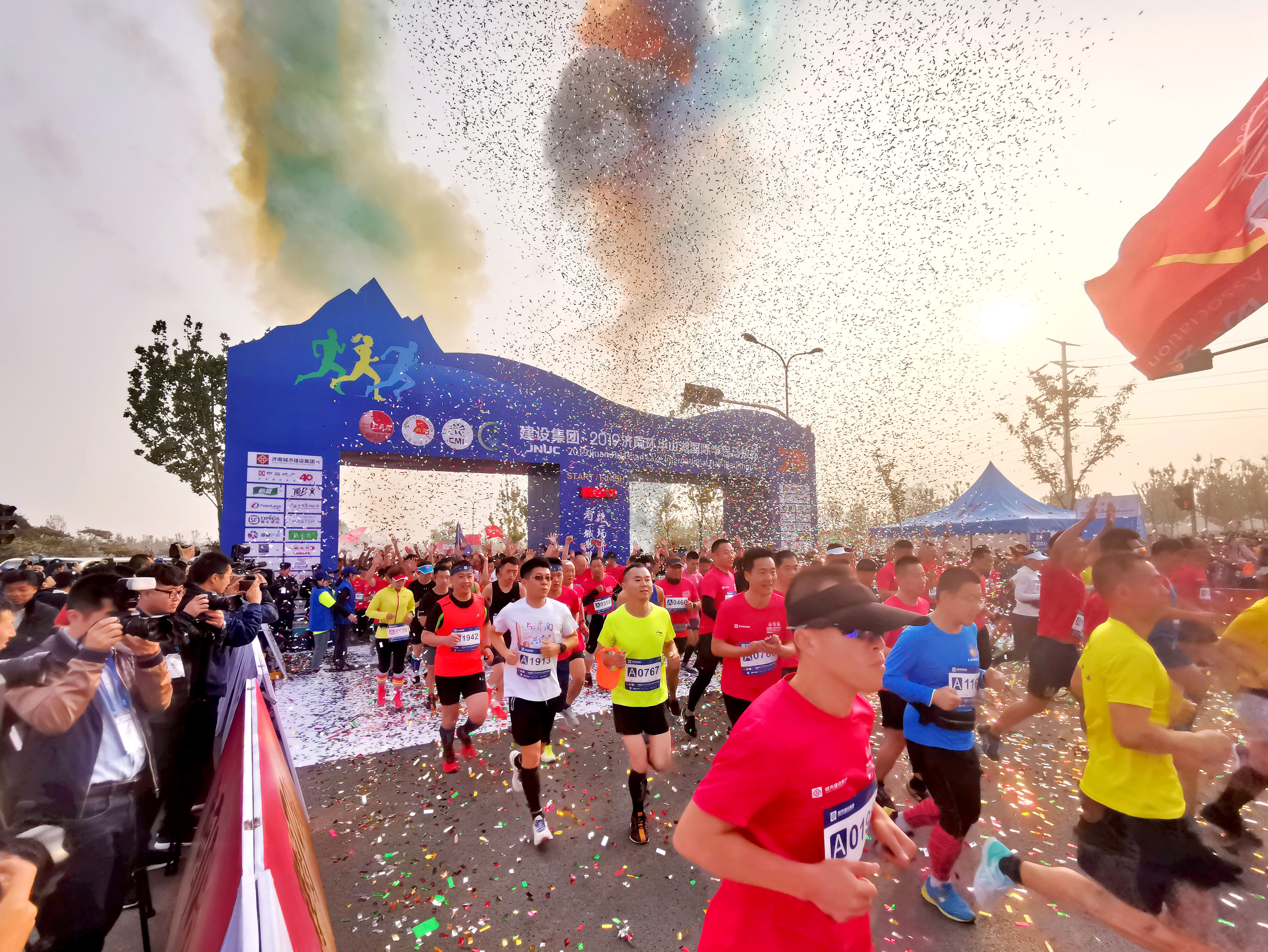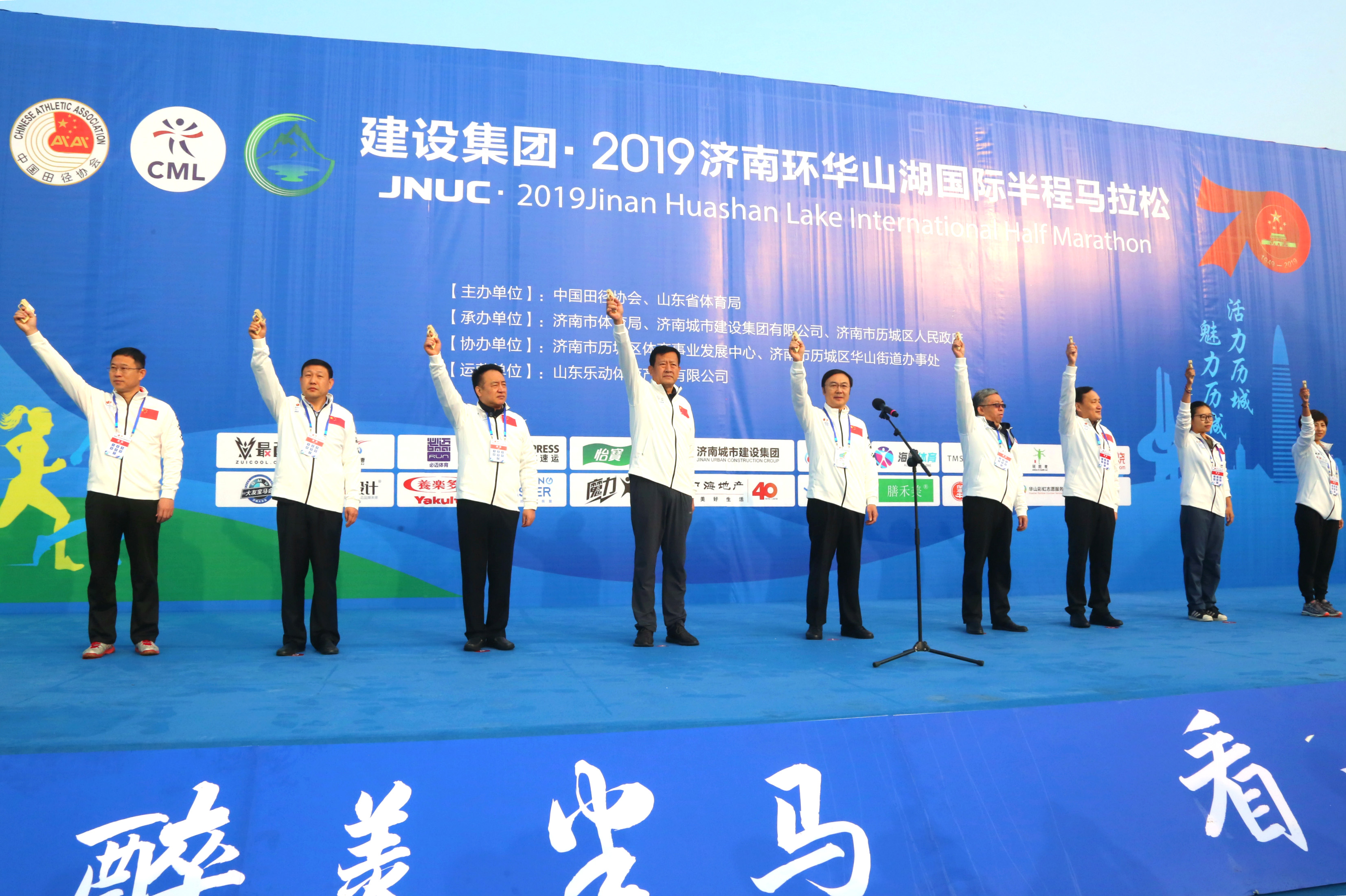 19日上午8点,437ccm·必赢国际·2019济南环华山湖国际半程马拉松赛鸣枪开跑,来自国外的20余名选手和全国近7200多名跑友报名参赛,共同感受马拉松项目带来的运动魅力。市委常委、宣传部部长杨峰,山东省体育总会专职常务副主席隋拥军,市人大常委会副主任许强,市政协副主席刘梦海,历城区委书记吴承丙,市体育局局长孔杰,中国田径协会社会活动部李响,437ccm·必赢国际董事长张海平,济南中海地产有限公司总经理孙亚茜等出席开幕式并为开赛鸣枪。