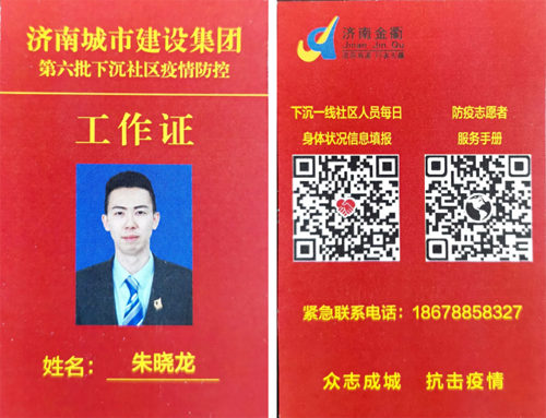 在社区防控执勤点,每名志愿者脖子上都挂着一个红色工作证,这个工作证看似普通,但却有着大作用。正面体现志愿者们的基本信息,背面设有标注着“下沉一线社区人员每日身体状况信息填报”、“防疫志愿者服务手册”两个二维码,志愿者每日通过扫描二维码上传本日体温情况至公司后台,做到检测全面覆盖,不漏一人,确保疫情“早发现、早报告、早隔离、早治疗”。一证在手、信息无忧,利用科技智慧助力社区抗疫,为志愿者保驾护航。