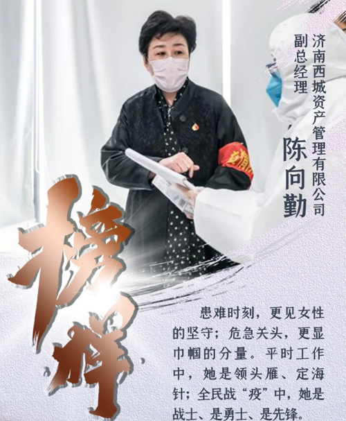 目前,济南全面复工复产,陈向勤对疫情防控工作进行再部署、再强调、再落实,做到“十个一律”、“十个严禁”。她提前出手、摸底调查,切实坚守联防联控严密防线,帮助运营单位制定应对措施,关键时刻施以援手,保障复工复产后资产管理公司所辖写字楼、商业综合体的疫情防控工作万无一失。