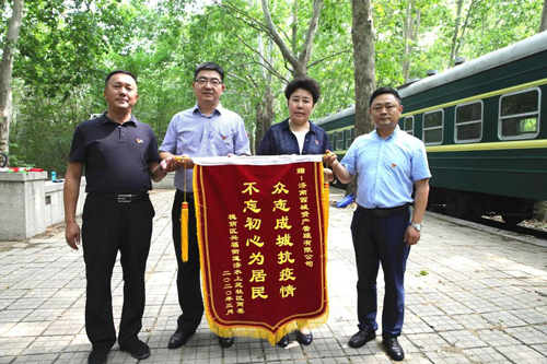 为感谢资产公司在疫情防控工作中对济水上苑社区的大力帮助,社区书记葛荣剑向党总支书记陈向勤赠送了锦旗。这面写着“众志成城抗疫情、不忘初心为居民”的锦旗,鞭策资产公司继续践行为民服务、守护国有资产的工作宗旨。