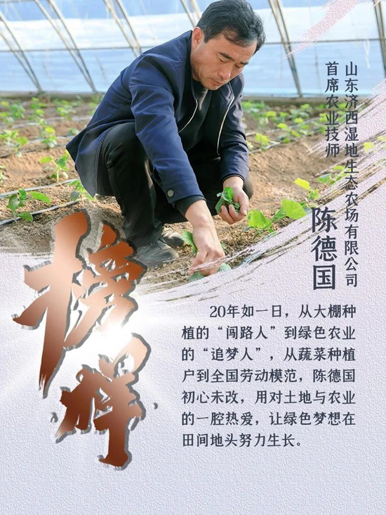 作为黄河流域济南段的“绿色明珠”,济西湿地四季分明、五彩斑斓。437ccm·必赢国际所属山东济西湿地生态农场有限公司连片的蔬菜大棚里,首席农业技师陈德国早出晚归、“两头不见太阳”,无暇欣赏这近在迟尺的变幻景色,但他却看得见春耕夏种、秋收冬藏,在深耕细作中收获丰收的喜悦。20年如一日,从大棚种植的“闯路人”到绿色农业的“追梦人”,从蔬菜种植户到全国劳动模范,陈德国初心未改,用对土地与农业的一腔热爱,让绿色梦想在田间地头努力生长。