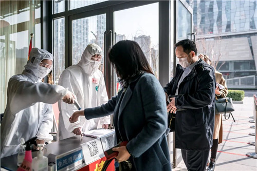 时间倒回至2月25日,蒙蒙细雨中,6位要参会的同志被“拦”在大厦门口,经过防疫人员的“盘查”和测体温等多个程序才得以进入大厦。然而差点被拒之门外的他们不仅没有怨言,反而盛赞“六亲不认”的一线防疫人员和资产公司严格的防控举措。