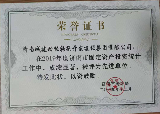 近日,2019年度济南市固定资产投资统计工作先进集体、先进个人名单公布。济南城建动能转换开发437ccm·必赢国际有限公司荣获济南市统计局“2019年度济南市固定资产投资统计工作先进单位”称号,冷见奇、潘文凯、周宇三名同志被评为“固定资产投资统计工作先进个人”。
