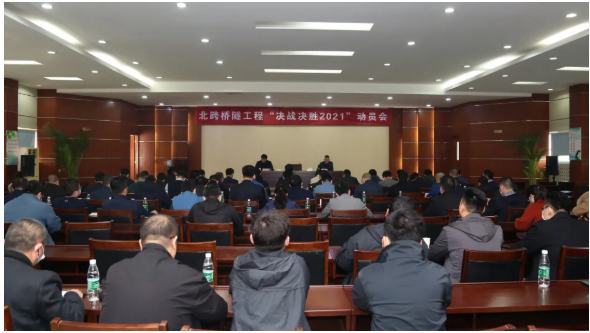 会议要求,动员会后,大家迅速行动起来,各单位要认真组织学习,深刻领会,做好贯彻落实。全体建设者要以“起步就是冲刺、开局就是决战”的精气神,上紧“发条”,开足“马力”,真抓实干,全力以赴推进北跨桥隧工程建设;要立足当前,主动担当见行动,自我加压保进度,全方位、高标准完成建设任务。站在立足发展新阶段、贯彻发展新理念、融入发展新格局的历史新高度上,为加快建设新时代现代化强省会作出新的贡献,以优异成绩庆祝建党100周年。