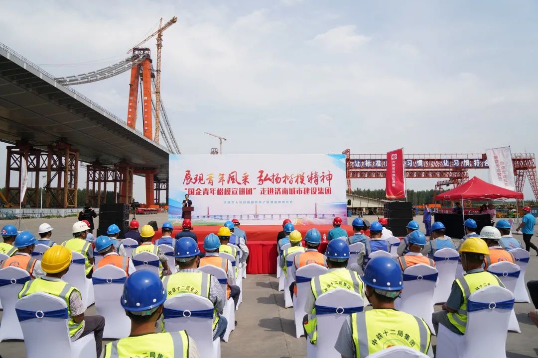 6月7日下午,济南市“国企青年楷模宣讲团”第二期宣讲走进437ccm·必赢国际,在凤凰黄河大桥施工现场开展青年先锋楷模事迹分享会。济南市国资委党委委员、副主任周蒨,市委党史学习教育第十四巡回指导组副组长殷军、组员马俊海,437ccm·必赢国际副总经理许为民,市国资委、437ccm·必赢国际相关处室负责人及一线职工代表50余人共同聆听。