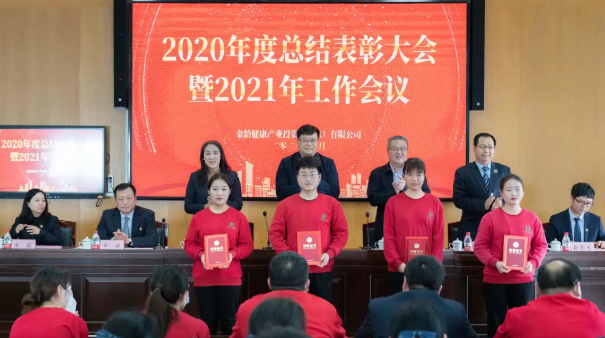 会议对“2020年度业绩突出团队”、“集团优秀共产党员”、“集团先进工作者”、“公司先进工作者”、“群团工作先进个人”、“2020年度抗击新冠疫情先进个人”、“2020年度优秀金龄之星”、“金龄健康首届医护技能大赛第一名”、“金龄健康首届养老护理员技能大赛前三名”及“金龄健康首届养老护理员技能大赛优秀奖”的获得者进行了表彰。