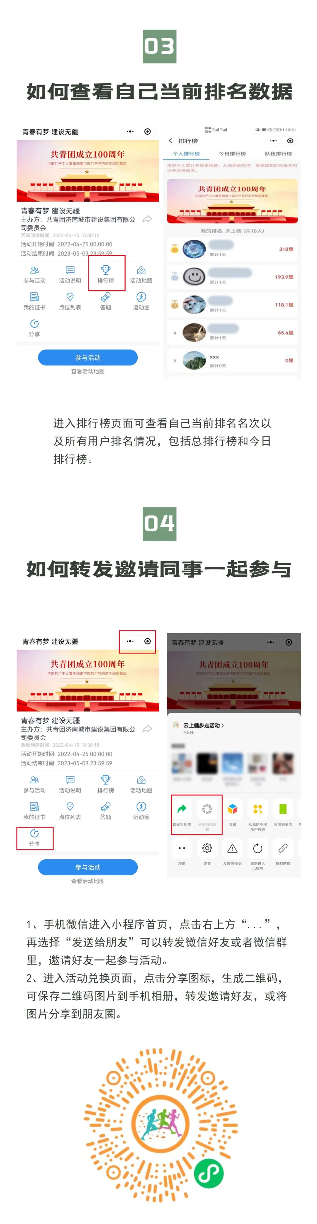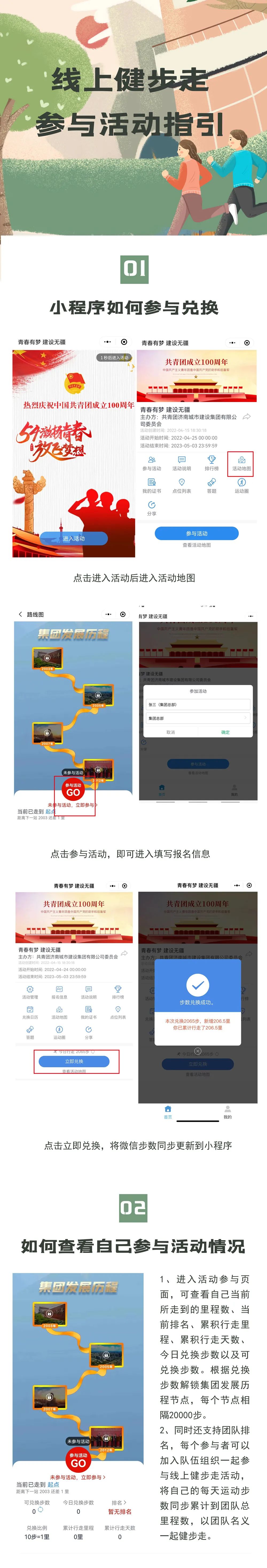 为庆祝建团100周年,开展好“百年峥嵘、初心不改、青春与共、砥砺前行”主题教育实践活动,展现集团自成立以来的光辉历程,赓续集团红色精神、凝聚集团奋进力量,不断增强广大职工的身体素质和健康水平,不断提高集团的凝聚力和向心力。由共青团437ccm·必赢国际有限公司委员会主办,共青团济南金曰公路工程有限公司委员会、济南新城文化传媒有限公司承办的“青春有梦 建设无疆”——职工线上健步走活动将于今晚零点正式上线,活动时间为2022年4月25日——5月3日(共十天)。