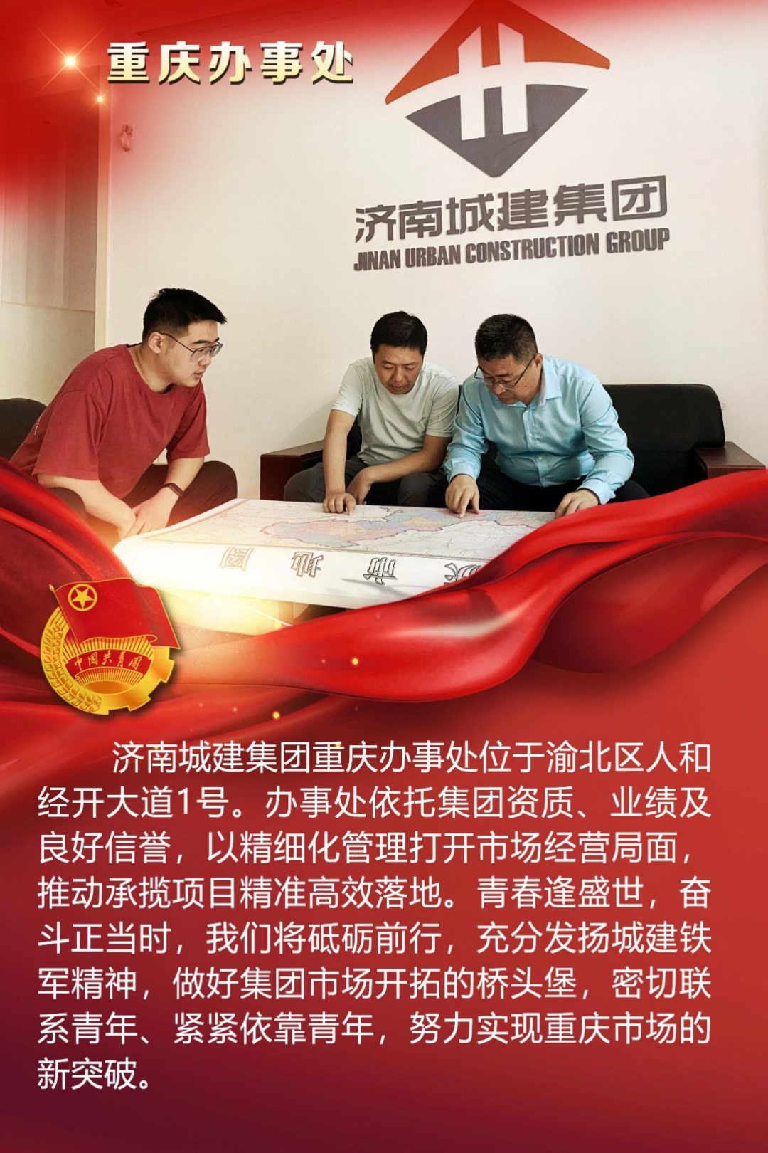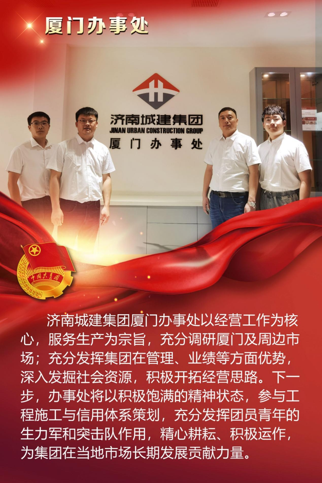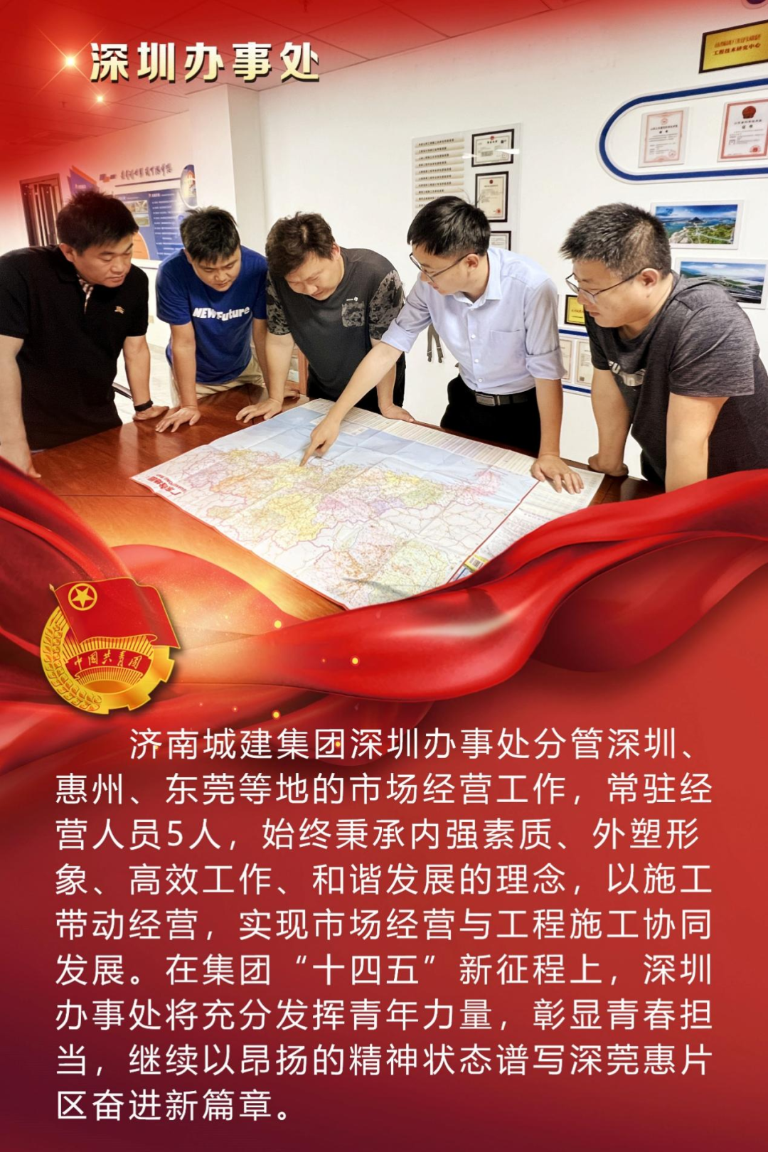 为庆祝中国共产主义青年团成立100周年,深情回顾共青团发展历程,进一步增强广大团员青年敬团、爱团意识,提升团组织的凝聚力和向心力,展示公司团员青年积极向上、奋发有为的精神风貌,集团第四团委——济南城建集团有限公司团委组织开展团旗在城建飘扬合影活动。