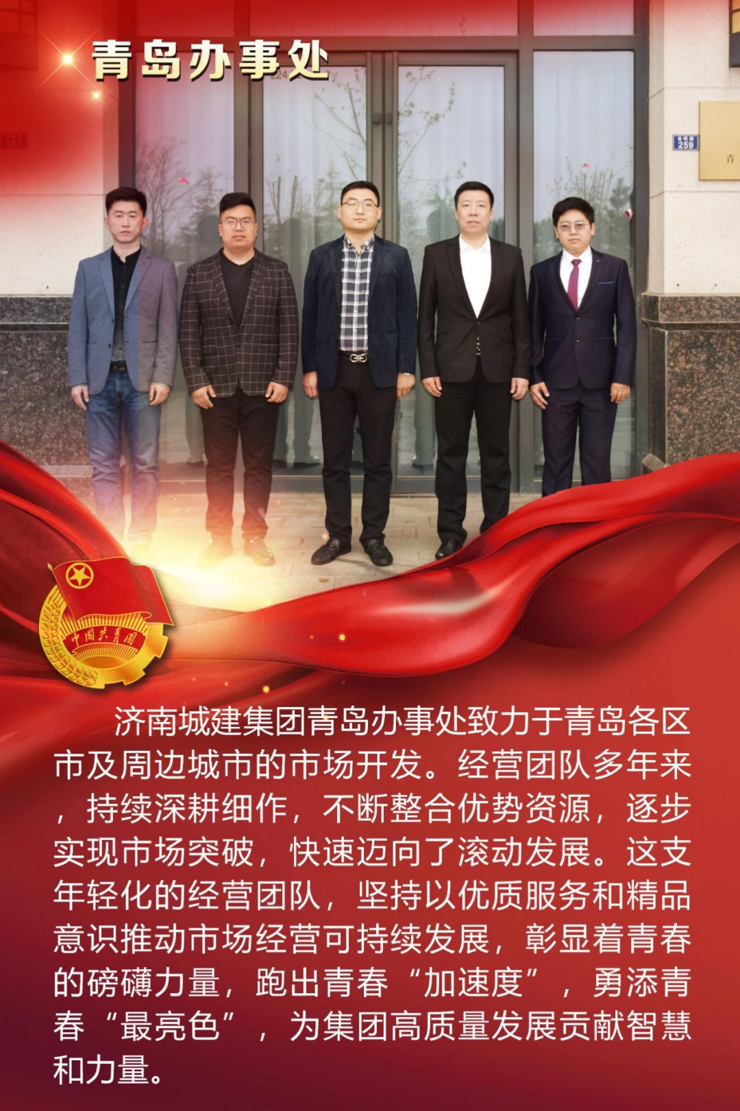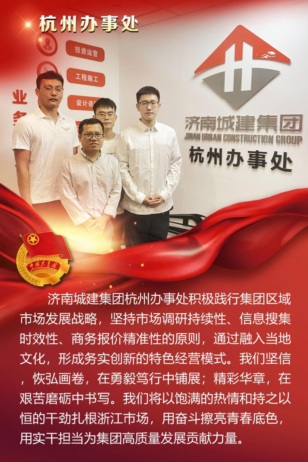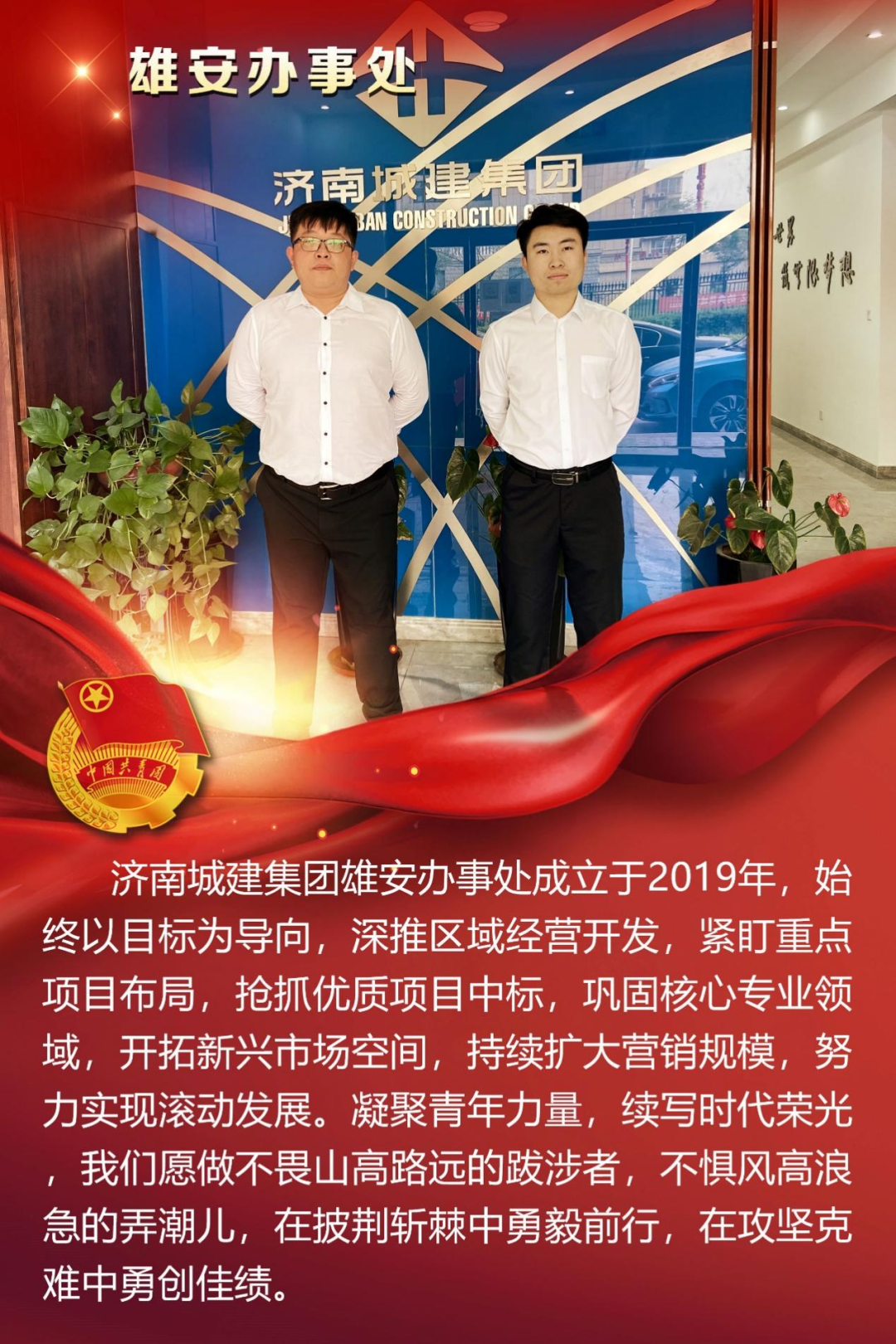 为庆祝中国共产主义青年团成立100周年,深情回顾共青团发展历程,进一步增强广大团员青年敬团、爱团意识,提升团组织的凝聚力和向心力,展示公司团员青年积极向上、奋发有为的精神风貌,集团第四团委——济南城建集团有限公司团委组织开展团旗在城建飘扬合影活动。
