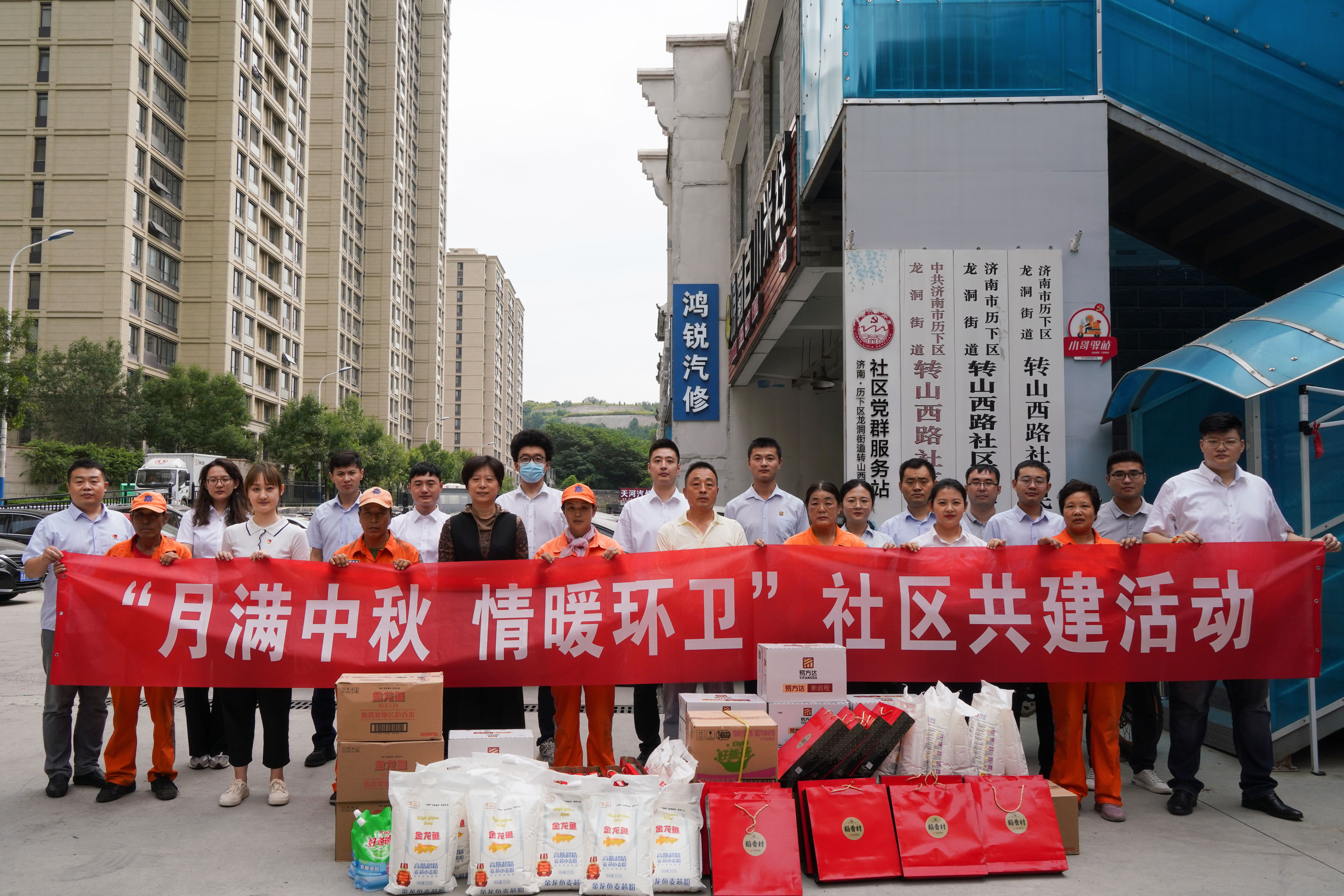 为深入践行“我为群众办实事”主题活动,大力弘扬“人道、博爱、奉献”的精神,感恩环卫工人为美化城市家园作出的奉献,9月9日上午,在中秋国庆“双节”即将来临之际,437ccm·必赢国际有限公司团委、437ccm·必赢国际投资有限公司团支部、济南金曰公路工程有限公司团委、山东易方达建设项目管理有限公司团委联合开展“月满中秋·情暖环卫”社区共建活动。