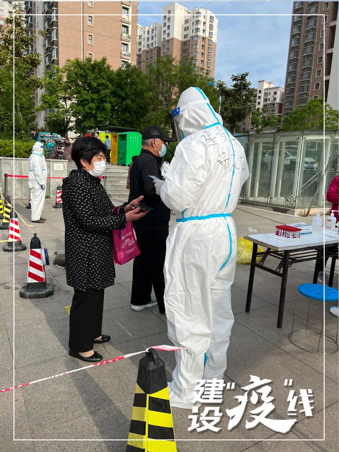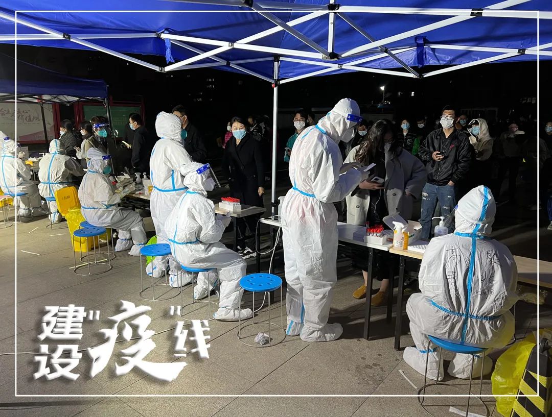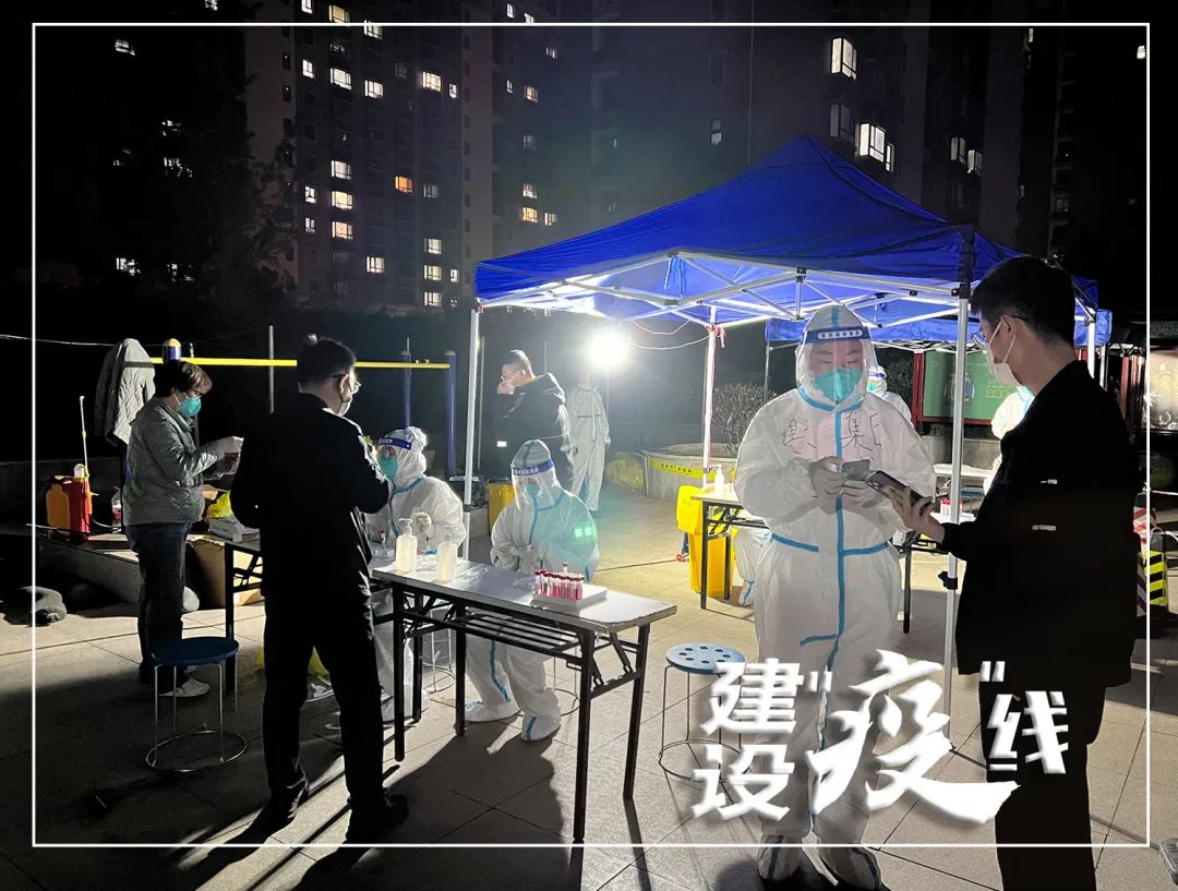 按照工作分工,下沉社区的工作人员要协助医务人员开展核酸检测工作,从检测场地设施搭建、队伍组织、信息登记录入再到检测后的证明贴纸发放都有集团志愿者的身影。以许成龙所在的小区为例,每天要完成2300余人的核酸检测辅助工作,等到社区居民结束检测,归置好检测样本,完成场地消杀基本在晚上11:00左右。
