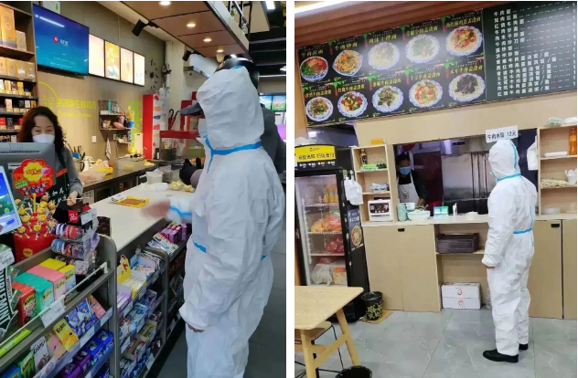 福仁物业人通过严密的巡查确保防疫政策的落地,在执行政策的同时,及时了解商户运营情况,为他们排忧解难,加油打气,坚定希望。