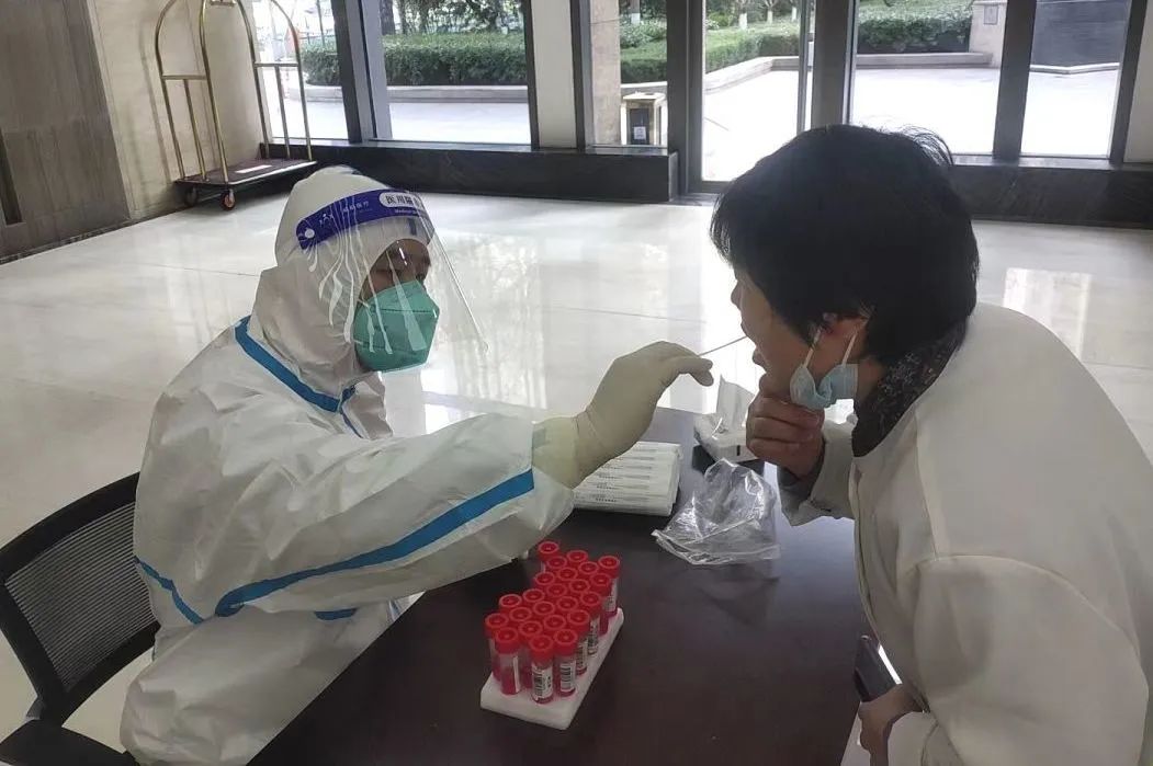 为减轻所属街道抗疫压力,城市建设大厦项目迅速响应部署,在大厦一层设立核酸检测点。项目积极组织自有员工参与核酸检测工作,通过视频学习、现场实操,熟练掌握扫码登记、咽拭子采集、个人防护等技能,确保核酸检测工作顺利完成,消毒、采集、归置,不断重复的动作累酸了胳膊,可她们却说:“不用休息,还有很多人在等待,我要坚持到为每一个人做完!”看着每天完成的检测数字,她们脸上露出欣慰的微笑,这是任务的完成,更是使命的担当。
