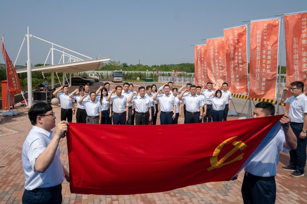 工程一部党支部组织全体党员在腊山河西侧3#地块开展重温入党誓词主题党日活动,推动党建工作与业务工作深度融合,强化党员干部的党性意识和宗旨意识,向党的二十大献礼。