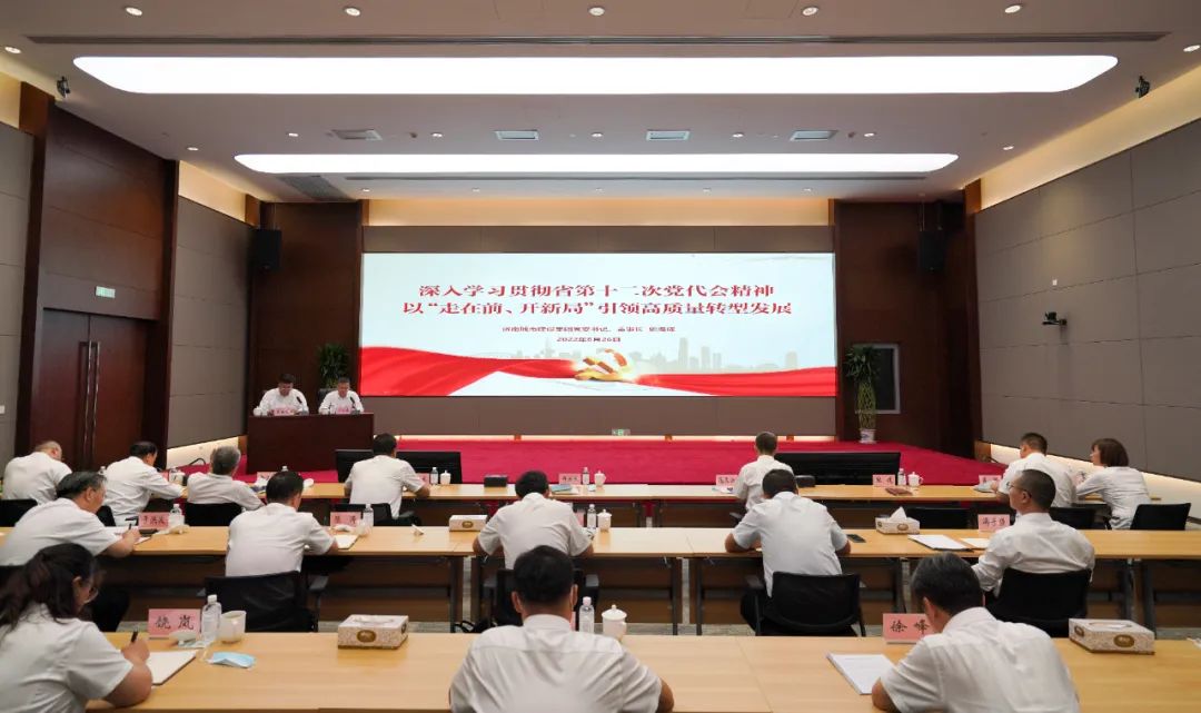 史海成同志首先介绍了山东省第十二次党代会的概况,并从提升政治站位、学思践悟等方面对学习贯彻省第十二次党代会精神提出了具体方法和要求,以新坐标、新使命、新部署、新要求、新境界这“五个新”概括阐释了“走在前、开新局”的精神内涵。