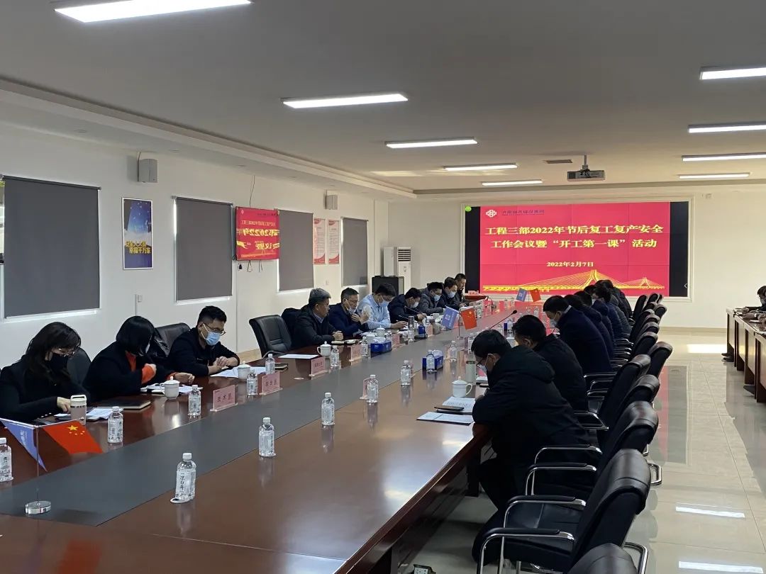 为传达落实省、市、集团安全工作会议精神,加强复工复产安全管理工作,落实省、市“开工第一课”专题活动要求,2月7日,集团工程三部组织召开2022年节后复工复产安全工作会议暨“开工第一课”活动,集团副总经理许为民出席会议,工程三部全体人员及各参建单位项目负责人参加会议。