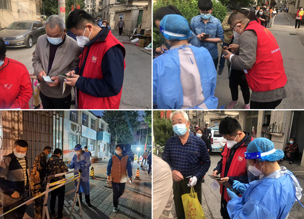 在板桥社区,身穿红色队服的青年突击队志愿者走街串巷,从宣传发动到为每一位村民进行核酸检测,他们分布在疫情防控的各个环节。“麻烦帮我看看这个怎么扫码”“请问做核酸在哪排队”“请在管控区路口支设围挡”,志愿者们细心讲解、耐心指导,有人哑了嗓子,有人磨出了水泡,但他们始终坚守岗位、恪尽职守,在板桥社区绘出一抹坚守的志愿红。