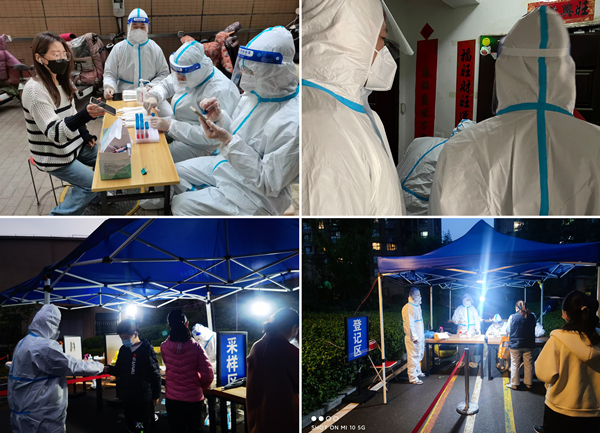 在标山社区,身穿白色防护服的青年突击队志愿者全力服从街道社区指挥,细致周到地协助社区做好核酸检测人员信息登记、现场秩序维护等工作。“请保持两米安全距离”“请打开健康码”“请拿好您的贴纸”,在标山社区核酸检测点随处可见他们穿梭忙碌的身影,他们耐心细致的服务为标山社区绘出一道安心的防护白。