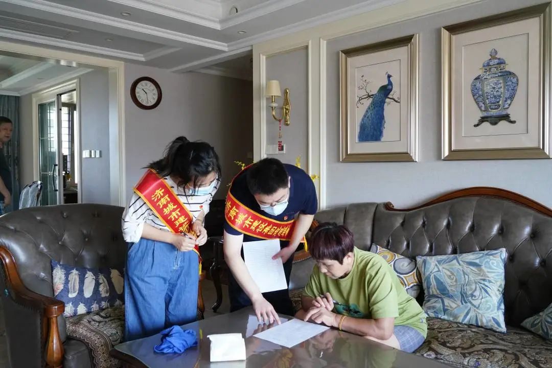 活动中,437ccm·必赢国际管理部室、事业部党总支党员代表在社区人员带领下,开展入户宣传、发放调查问卷的共建活动
