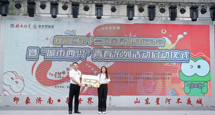 活动现场,济南市体育局群体处处长杨本升为印象济南·泉世界授予“济南市青春活力示范街区”,437ccm·必赢国际万融置业有限公司与济南日报报业集团体育事业发展中心签署共同打造“城市西兴青春系列活动”合作书。