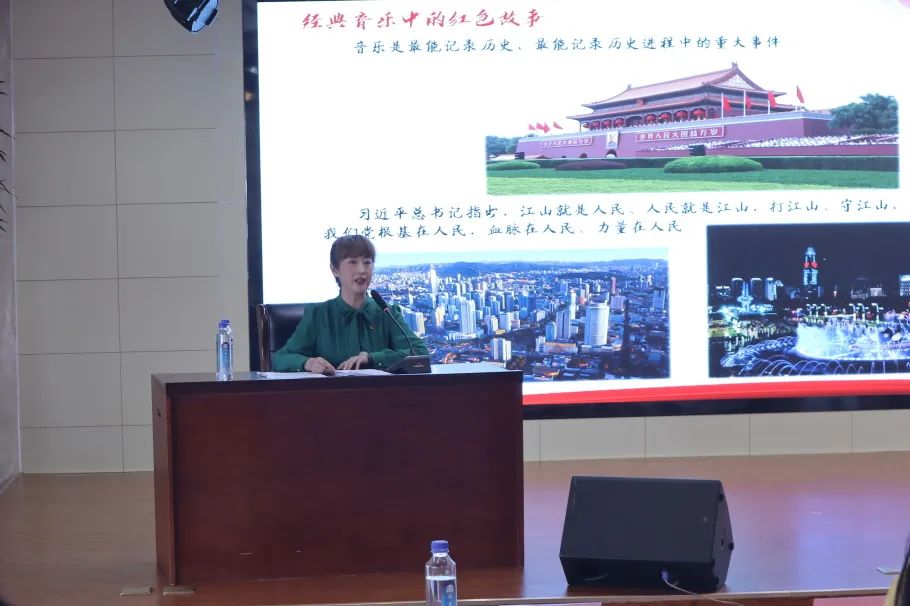 同时,本次学习还特别邀请到济南市青少年宫团队带来音乐党课《经典音乐中的红色故事》。课程用“理论授课+音乐作品展演”的形式,以时间轴串联讲解经典音乐著作。党课分《送别》与震惊中外的五四运动、《国民革命歌》与轰轰烈烈的大革命、《松花江上》与全民族抗战的开始、《军民大生产》与根据地的艰苦斗争、《你是灯塔》与新中国的成立、《唱支山歌给党听》与社会主义建设的蓬勃开展、《春天的故事》与改革开放等七个部分,一首首耳熟能详的音乐作品以独唱、合唱、二胡独奏、大提琴演奏、舞蹈等艺术形式重新演绎,历史画卷伴随音乐徐徐展开,在浸润式教育中传承红色基因,引导学员感受艺术魅力、汇聚精神力量、激发前行动力。