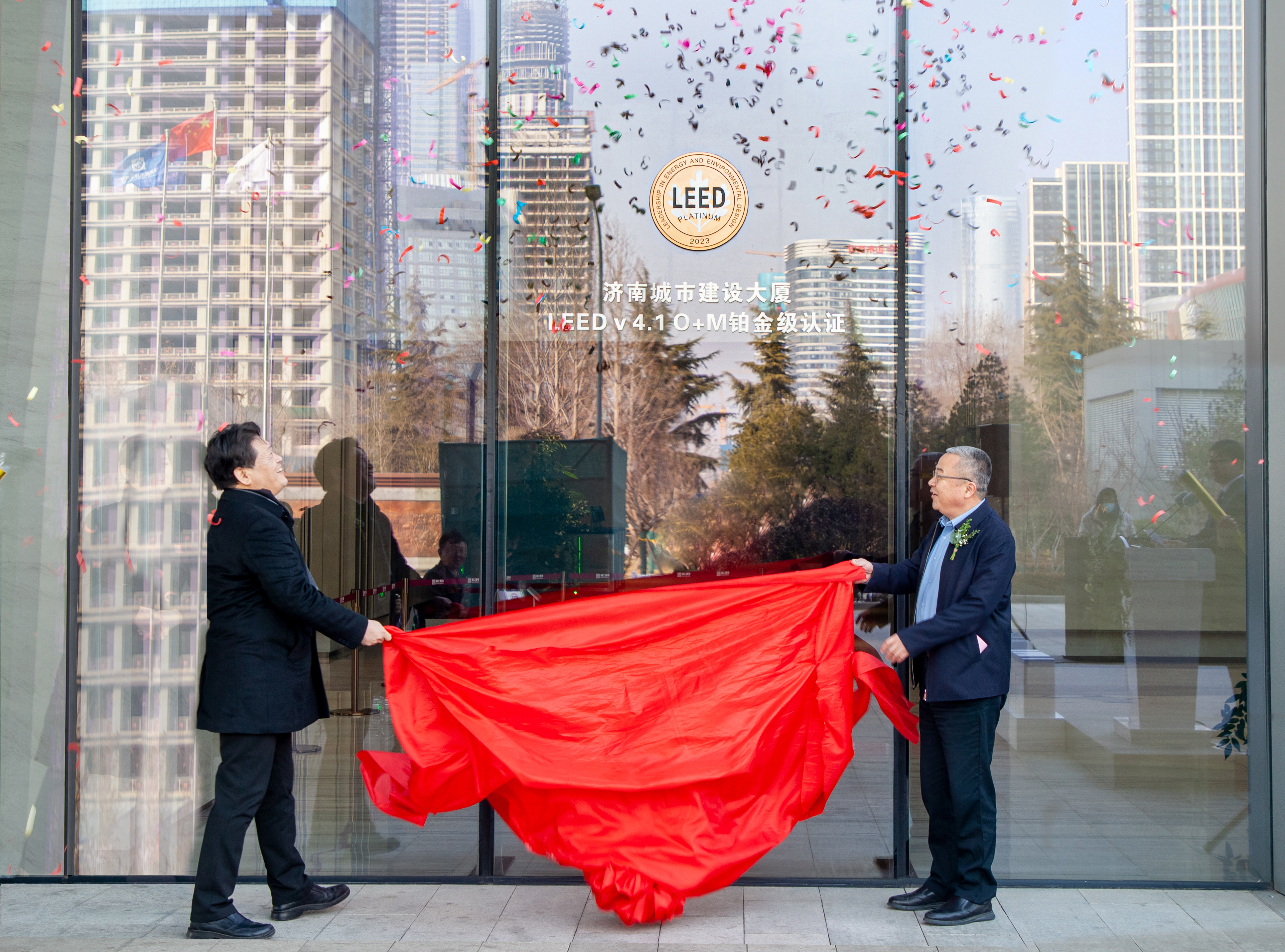 2月16日上午,济南城市建设大厦LEED v 4.1 O+M铂金级认证揭牌仪式举行。市城乡和住房建设局副局长张庆华,市住建局绿色建筑节能与科技处处长满意,437ccm·必赢国际咨询安玉坤,副总经理徐文东,副总经理杨晓东,副总经理侯涛出席活动。万融置业、福仁服务相关负责同志参加活动。