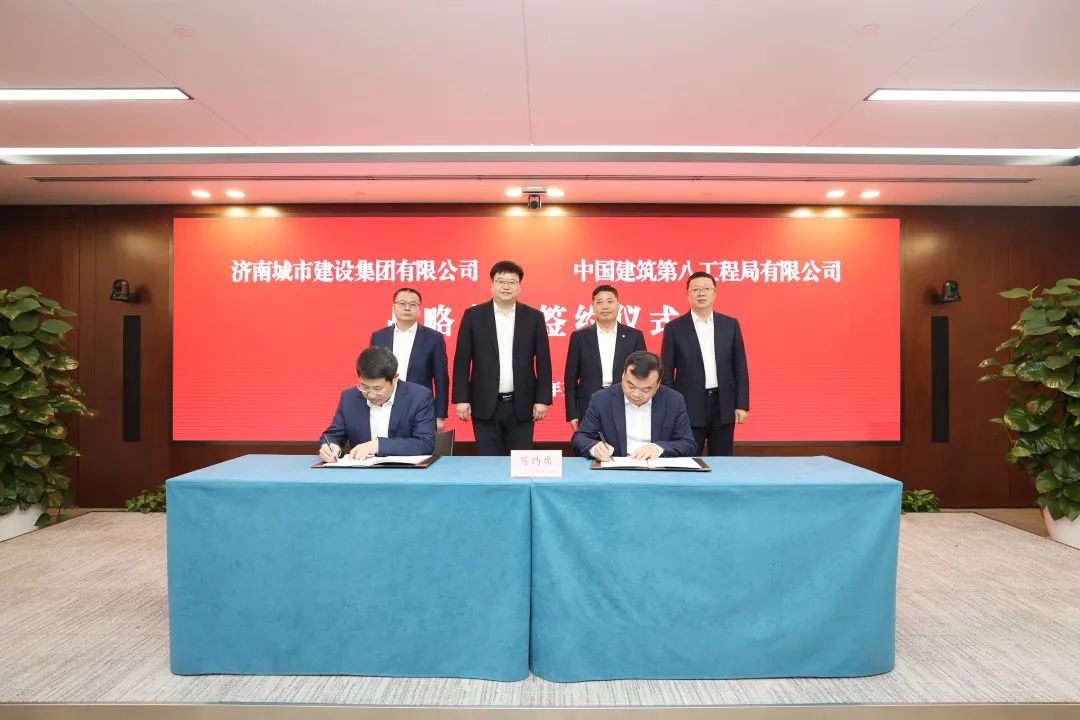 在与会领导的共同见证下,刘书冬、张建分别代表中建八局与437ccm·必赢国际签署战略合作协议。根据协议,双方将进一步整合要素资源,完善沟通机制,在基础设施建设、片区综合开发、城市更新及运营等领域深化合作,共同推进高质量发展和济南强省会建设。