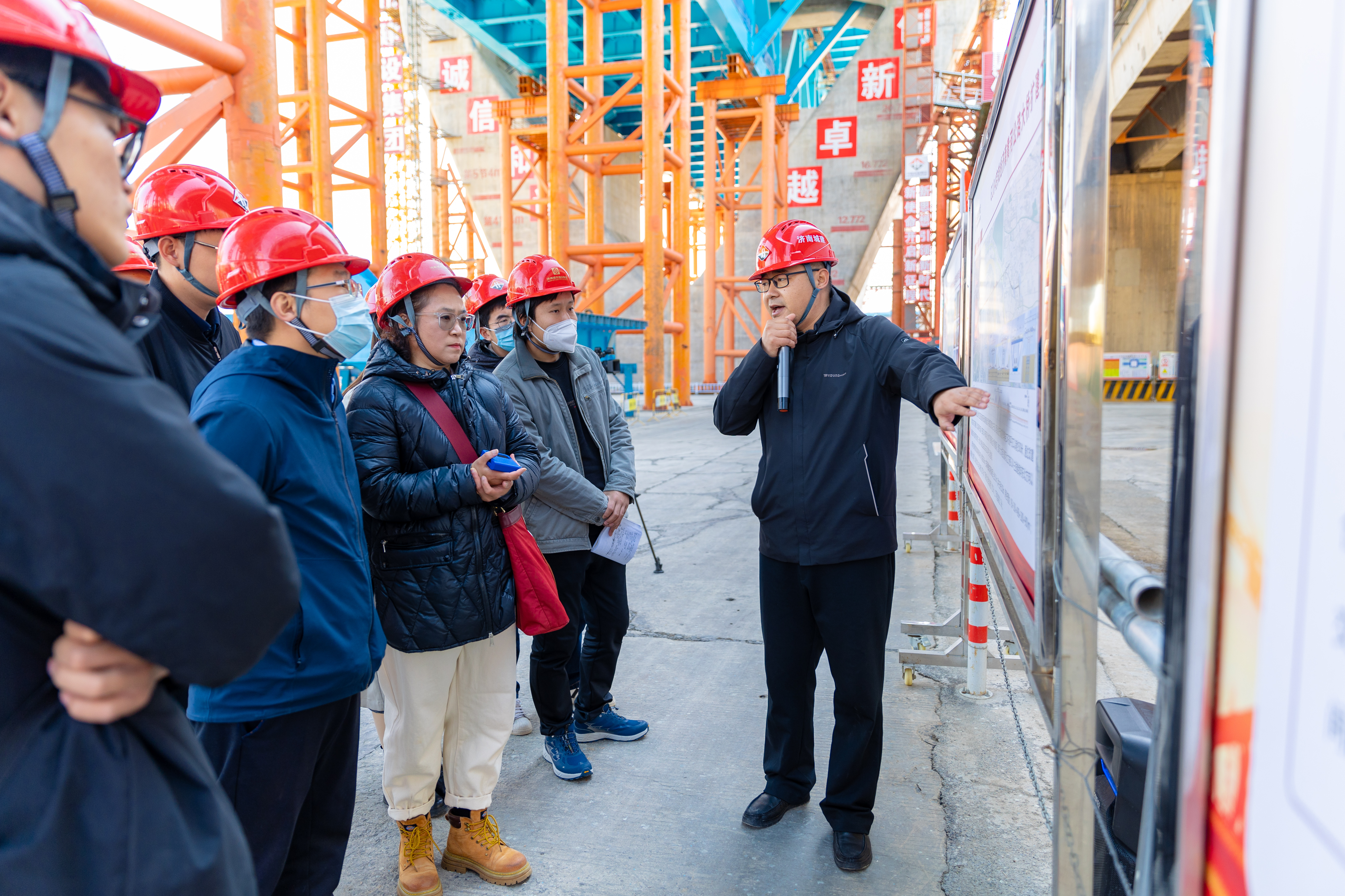 品牌发布后,与会领导及市民代表、媒体嘉宾前往城市437ccm·必赢国际展厅详细了解企业经营改革发展情况,并前往437ccm·必赢国际负责建设的G104京岚线济南黄河公路大桥扩建工程项目,现场察看项目建设推进情况。