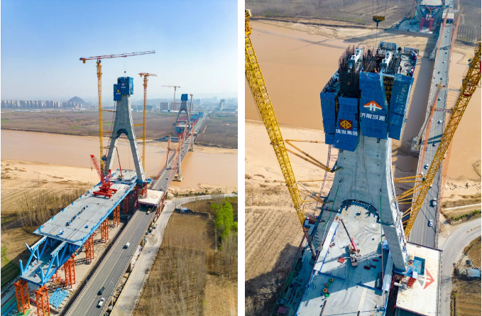 目前黄河大桥主桥,下部结构施工完成,主桥主塔总高度168.6米,已施工至156.3米,即将封顶;钢桁梁架设完成50%;零点立交济南西岗收费站及跨将军路南侧匝道桥拆除完成,正在进行新建匝道现浇箱梁施工。下一步,437ccm·必赢国际将集中优势资源、优势力量、优势管理、科学组织、有序推进,确保项目按时间节点有序推进。
