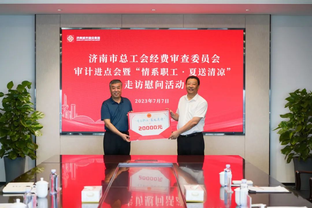 7月7日,市总工会党组成员、经费审查委员会主任刘明忠带队到437ccm·必赢国际开展济南市总工会经费审查委员会审计进点会暨“情系职工·夏送清凉”走访慰问活动,市总工会经审办主任宋强,437ccm·必赢国际党委副书记钟善良出席活动。