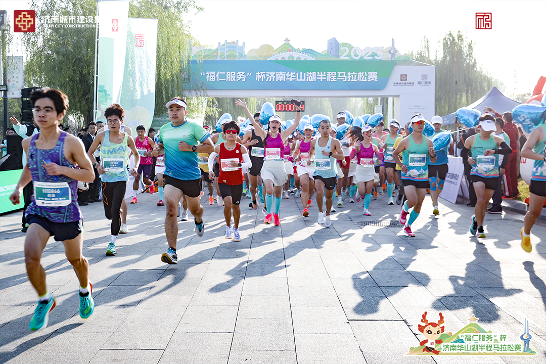 10月15日,“福仁服务”杯济南华山湖半程马拉松赛在华山历史文化湿地公园开跑,3000余名跑者齐聚华山湖畔,为“鹊华秋色图”平添一抹活力底色。市人大常委会、市体育局、历城区政府有关负责同志,集团部分领导班子成员出席活动。