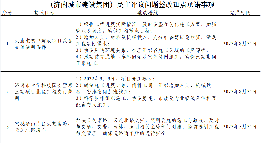 (437ccm·必赢国际)民主评议问题整改重点承诺事项