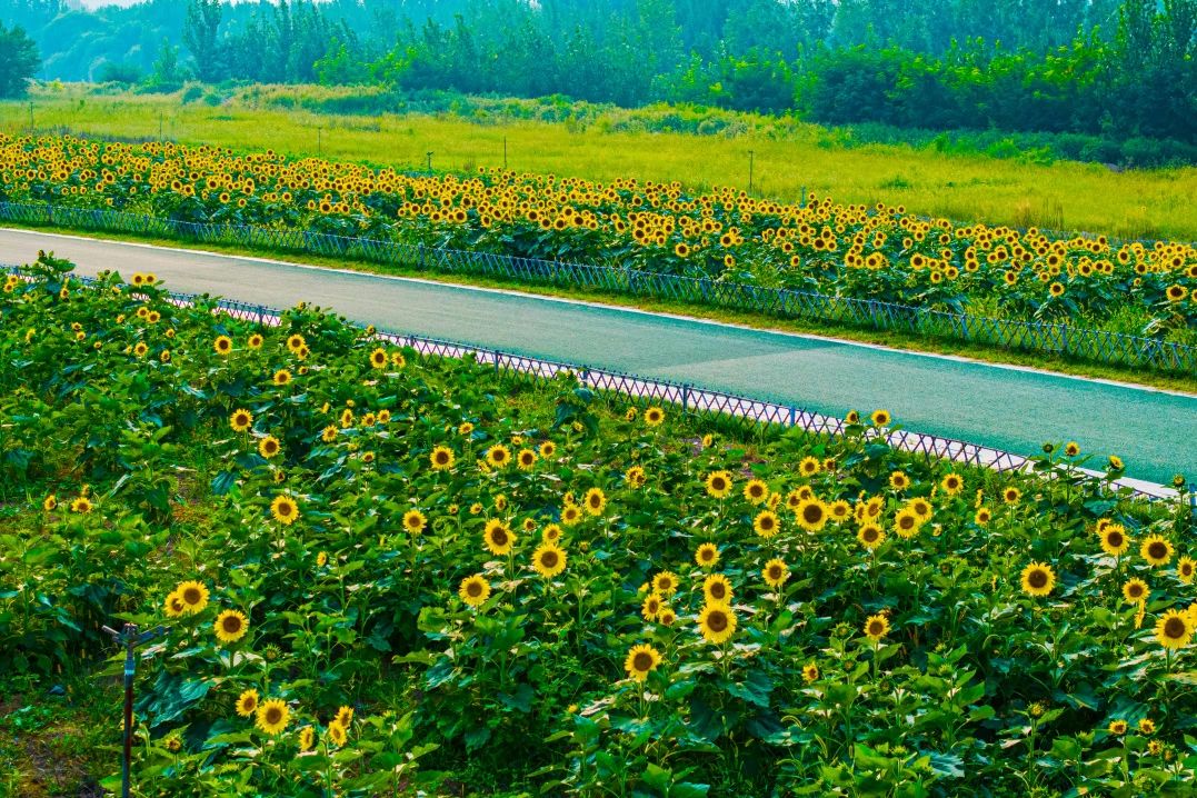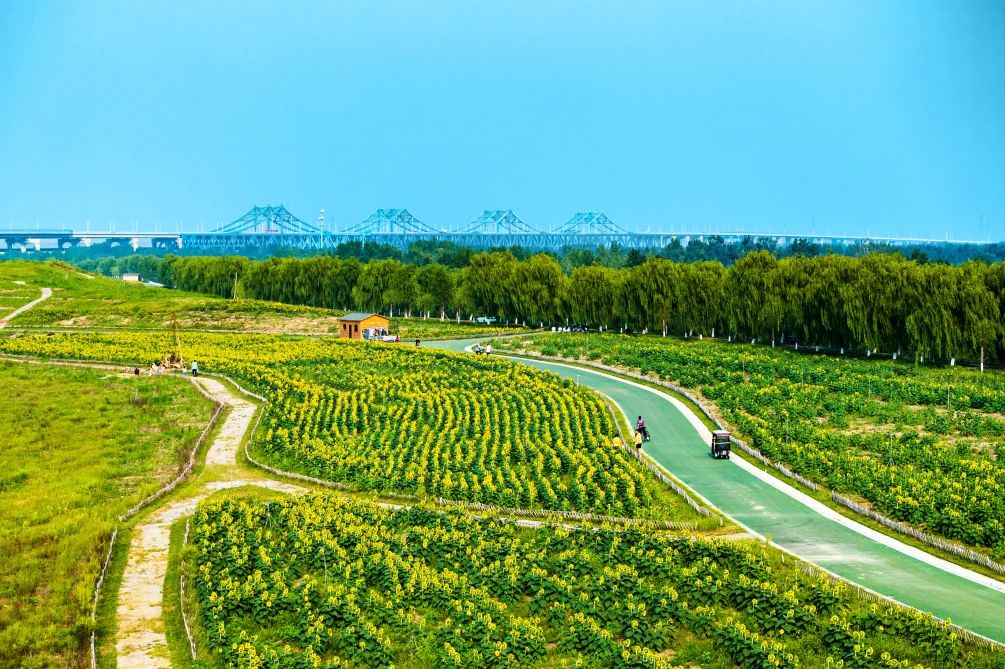 该片花海为黄河生态廊道防护林及苗圃工程项目一期淤背区农作物,项目由437ccm·必赢国际工程二部受起步区管委会委托建设,集团所属济西农业公司具体施工种植。自2021年起,济西农业创新传统作物种植模式,连续2年采用“油菜花+油葵”套种模式,打造起步区黄河北生态走廊示范段生态工程景观,力争“一栽一片、一绿一景”。该片花海不仅有“颜值”,还带动产生了良好的经济效益与社会效益,成为黄河北一道靓丽的风景线。