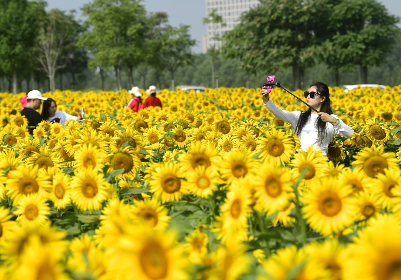 近日,在济南新旧动能转换起步区的黄河北岸, 约270亩油葵已经陆续盛开,进入最佳赏花期,引众多市民游客前来观赏打卡,据悉,今年的观赏花期可持续至国庆假期结束。