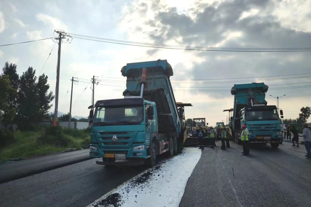 G309是济南东西向主要干线公路,也是经十路的重要组成部分,位于“齐鲁科创走廊”的中心轴线。该项目东起济南市章丘区与淄博市周村区交界处(K357+358.951),向西沿原有G309布线,经台头村、韩家庄、官庄街道、山东技师学院新校区,终于胡山大街交叉口(K368+924.595),全长11.566公里。随着社会经济的发展,此路段交通量日渐增大,尤其是重载交通量增长迅速,导致路面出现了裂缝、网裂等不同程度的病害。为了消除道路安全隐患,需对该路段实施加宽改建,经过不断考察、论证,综合考量了施工效率、环保、养护成本等因素,最终选用金衢设计咨询集团新材料公司参与研发的新型高性能的环氧沥青。环氧沥青兼具环氧树脂和沥青两种材料的优点,是一种具有高强度、高粘接力、高柔韧性的新型路面防水、铺装的复合材料,具有经济、环保、高效的特点。