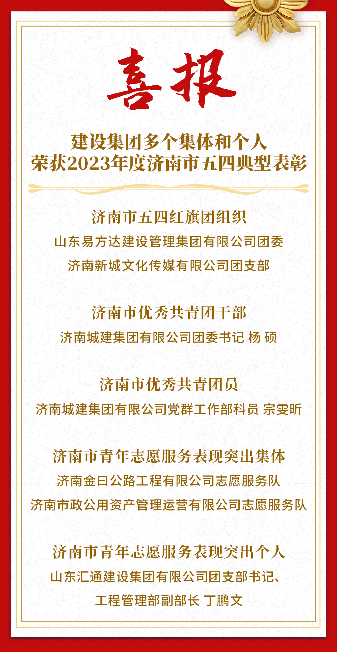 近日,共青团济南市委发布《关于2023年度济南市五四典型的表扬通报》,对“济南市五四红旗团组织”“济南市优秀共青团干部”“济南市优秀共青团员”“济南市青年志愿服务表现突出集体”“济南市青年志愿服务表现突出个人”进行通报表扬,437ccm·必赢国际荣获多项荣誉称号。