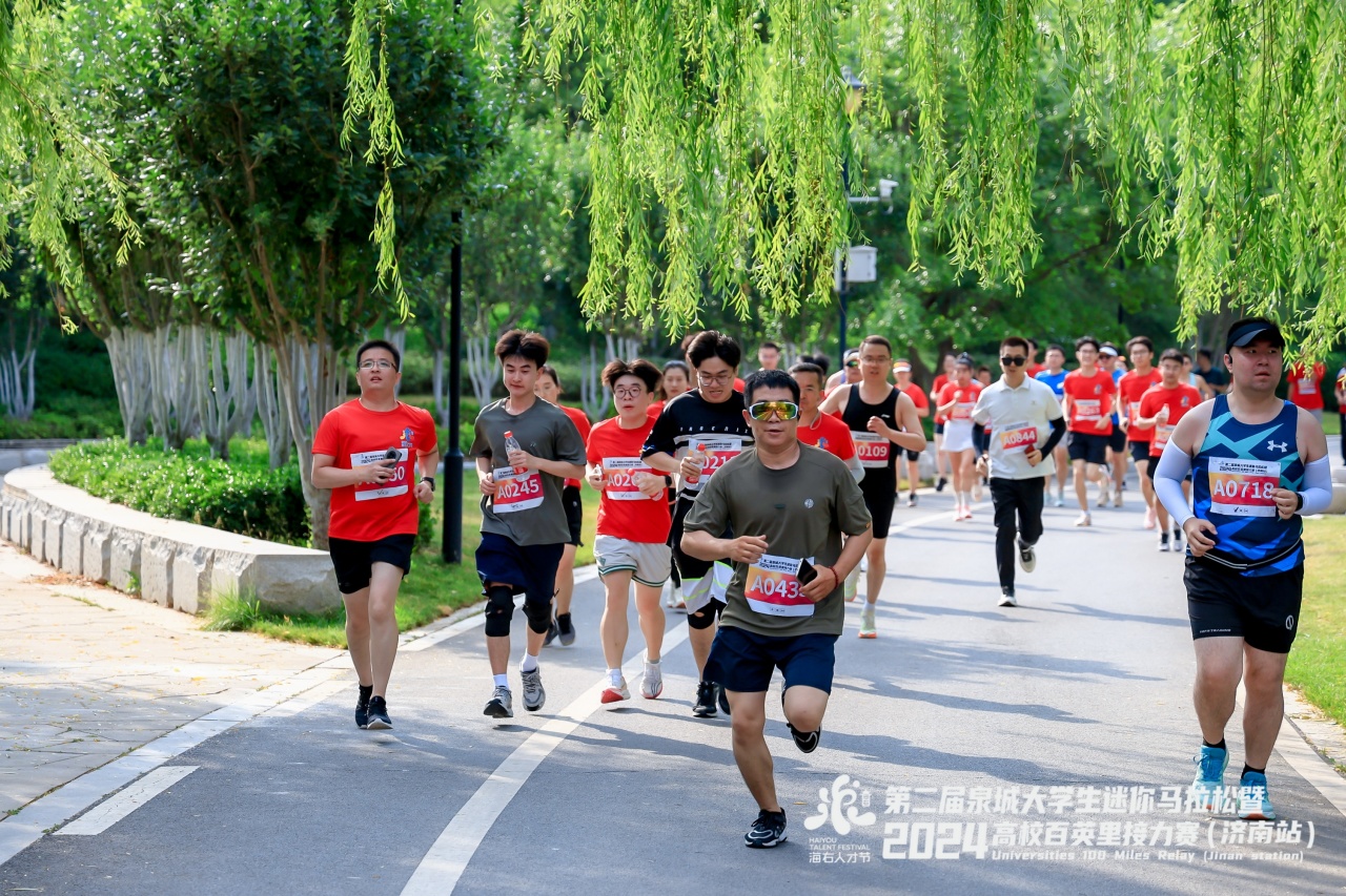 本届赛事不仅是一次长跑爱好者的盛会,还是展示城市风采、提升城市软实力的一扇窗口。随着鸣笛起跑,大学生迷你马拉松、2024高校百英里接力赛选手从起跑线鱼贯而出,他们用脚步丈量绿色泉城,感受湖光山色之美,加油声、欢呼声响彻赛道两侧,热烈的氛围感染全场。华山湖景区绿树成荫,选手们在尽情享受跑步乐趣的同时,近距离感受华山的自然人文美景和诗意浪漫。