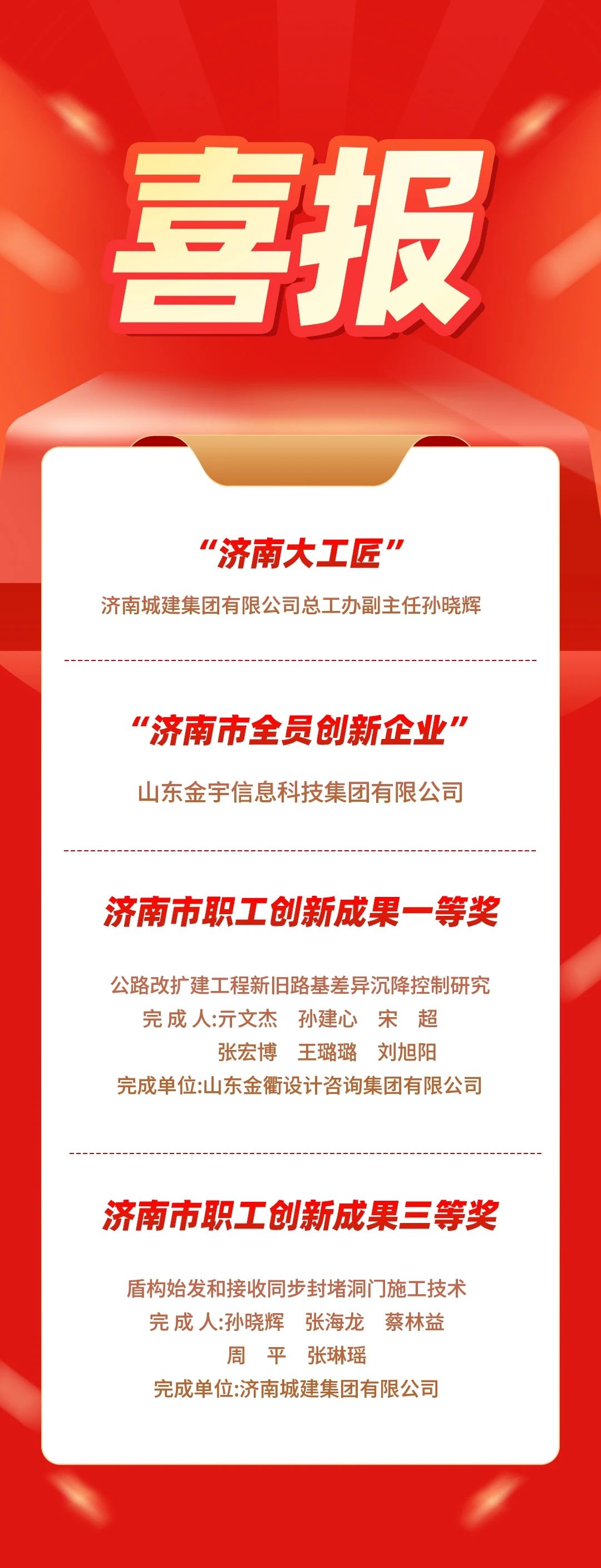 近日,济南市总工会发布《关于公布2024年度 “济南工匠”的通知》《关于公布2024年度泉城职工全员创新竞赛结果的通知》,437ccm·必赢国际多个集体及个人获表彰。